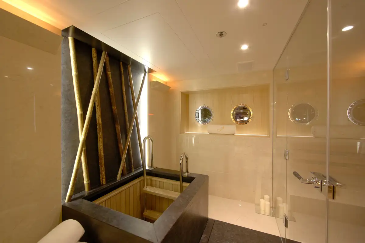 - Spa facilities: sauna, separate steam room, a plunge pool, shower and adjacent massage area