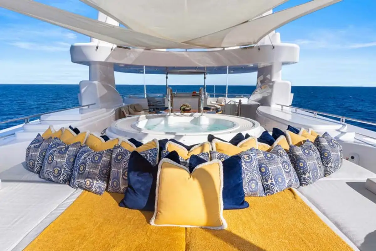 The spacious sundeck is a great outdoor social hub with dining, sitting, lounging and sunbathing zones in sun and shade plus a bar and jacuzzi, so everyone can find a perfect place to relax.