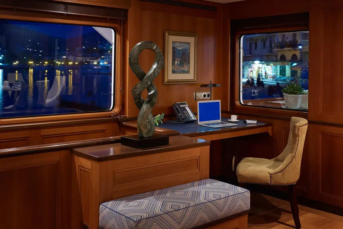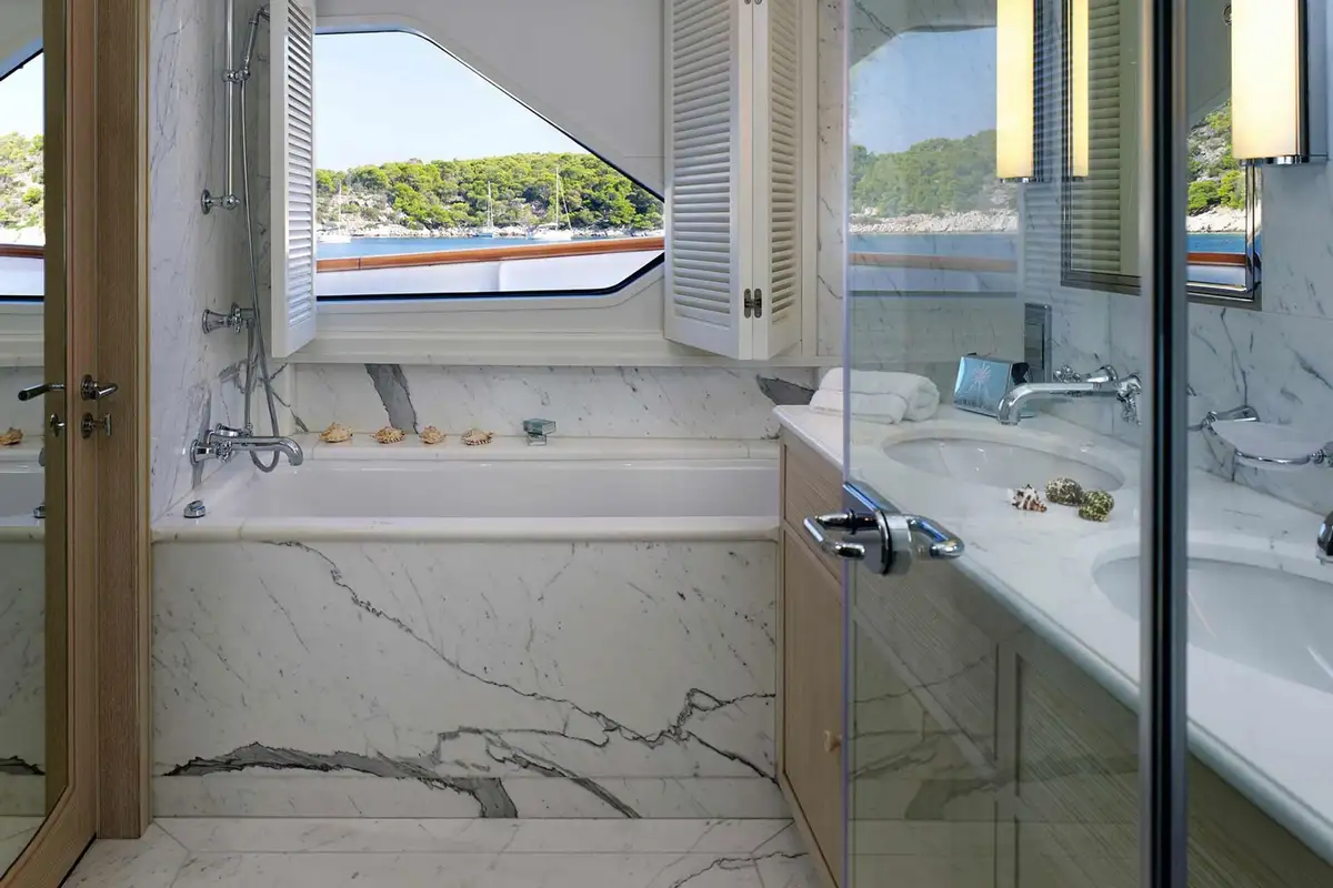 ANCALLIA can welcome up to 12 guests in seven cabins. On the main deck, the master suite has been designed as a stylish home: chic, modern décor is paired with a spa-style en suite. A further six cabins are all located on the lower deck and comprise of a VIP, two double and two twin cabins. There is also a single cabin which can be used as staff accommodation when required.