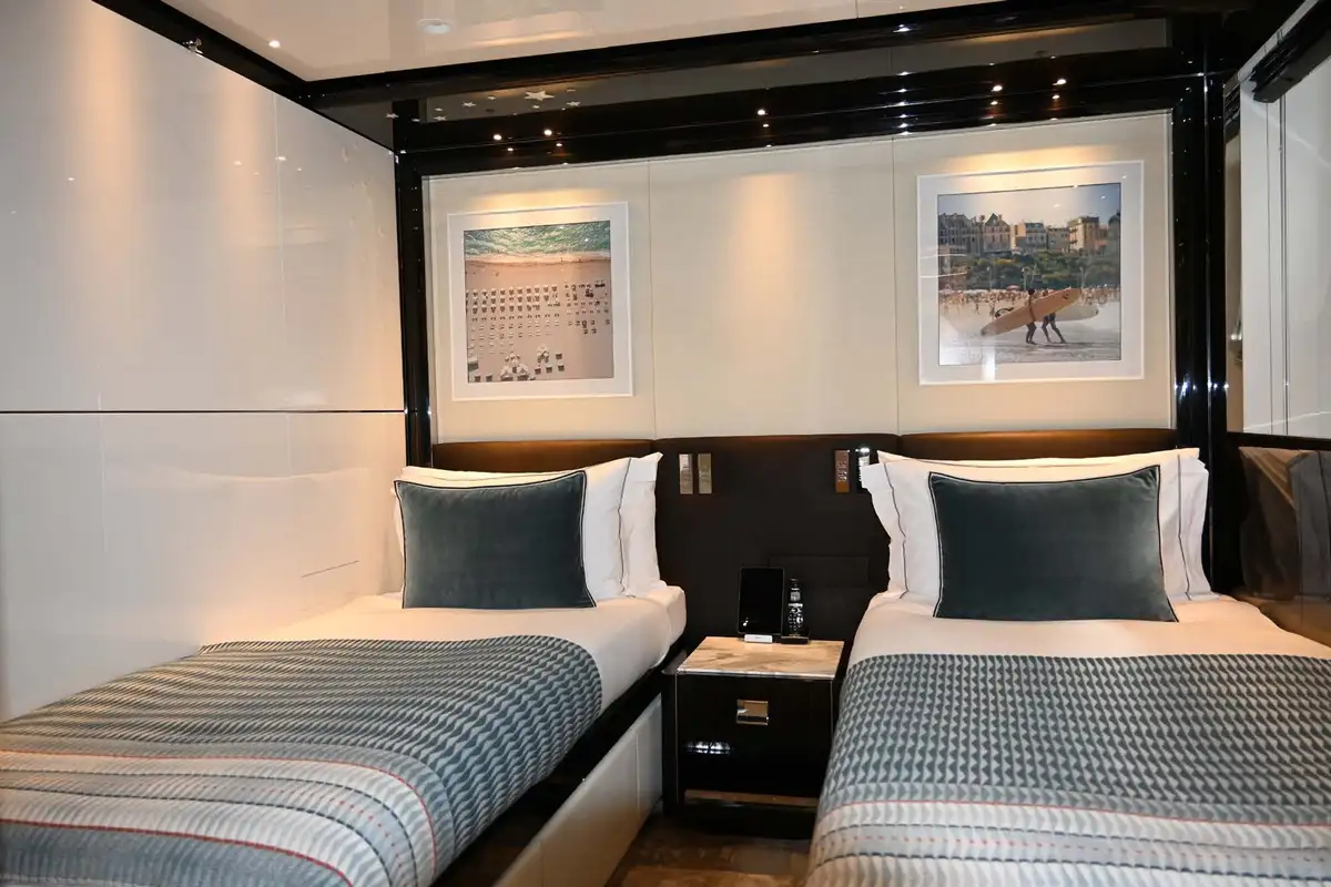 Maintained in immaculate condition, ANDIAMO offers versatile and inviting social spaces, with many different seating areas for moments of privacy, relaxation and sunbathing. There’s accommodation aboard ANDIAMO for 12 guests in six cabins, configured as four doubles and two twins. The master suite enjoys a prime position on the main deck and is full beam.