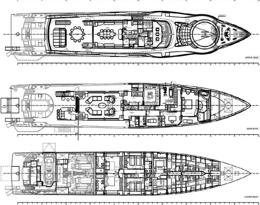 Choosing where best to spend your time between interior and exterior spaces is difficult when the interior is so beautiful and the exterior so vast. Inside, the main deck master suite has a separate office, a sauna, a shower/hammam room, a treatment room, and a gym. The full beam space has a permanent balcony, accessed through glass doors to starboard.
