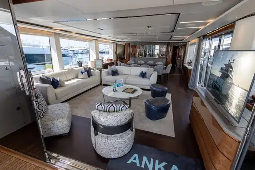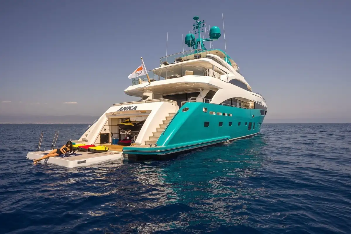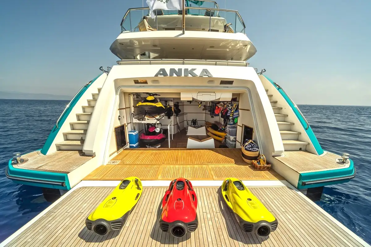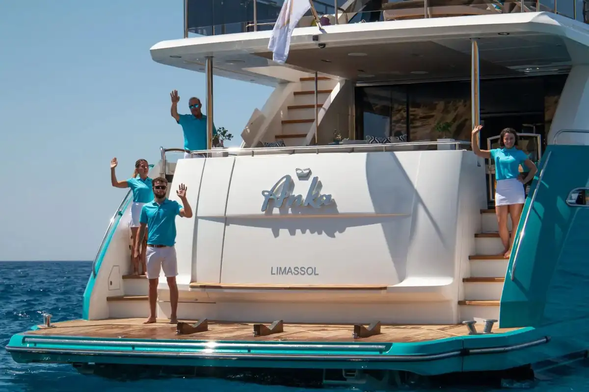 ANKA 30m (100ft) is a notably swift and spacious yacht with a convertible hardtop flybridge, a foredeck lounge and two main decks of interior accommodation. She’s designed to host groups of up to 10 guests on board with a five-cabin layout and a crew of six to ensure attentive service at all times.