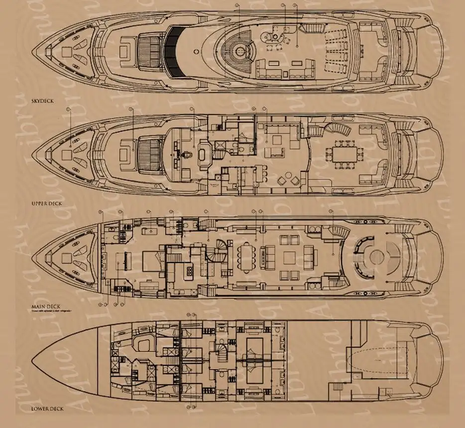 Swift and spacious with her own distinctive contemporary style, the 40-metre (131ft) AQUA LIBRA is a Sunseeker 131 – the current flagship model of the iconic British brand. She has tri-deck accommodation for up to 11 guests with very ample living space inside and out, plus the benefit of remarkable performance for a yacht of this size.