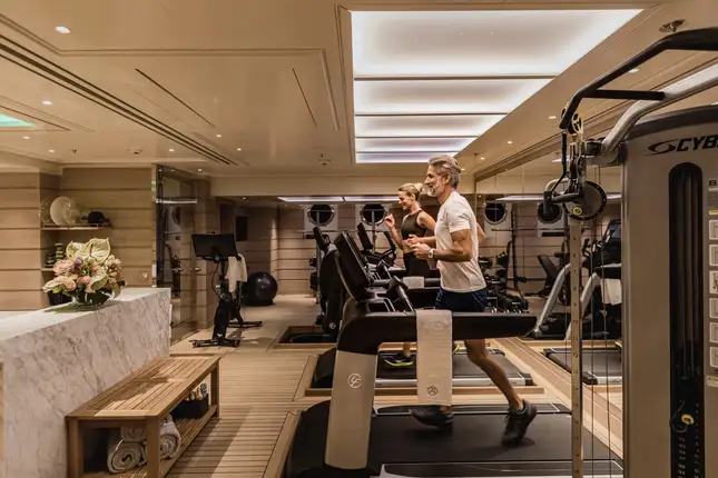 • Fully equipped gym, with access to the sea, with personal trainer and sunken machines for additional head height