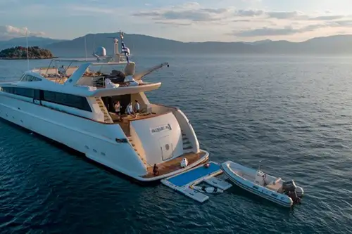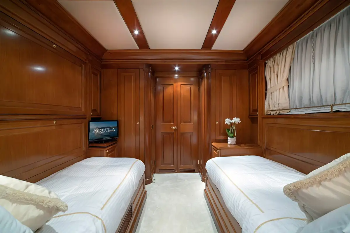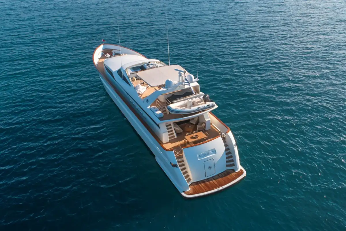 Welcome aboard the elegant AQUILA 37m (121.5ft). Refitted in 2022, she is immaculate and offers you and your guests a choice of two master suites, relaxing deck spaces, and a beautiful, classically styled interior. She comes with a host of watersports equipment, and more is available on request. So, whether you’re looking for relaxing sun-drenched days or action-packed afternoons, AQUILA has all you need and more.