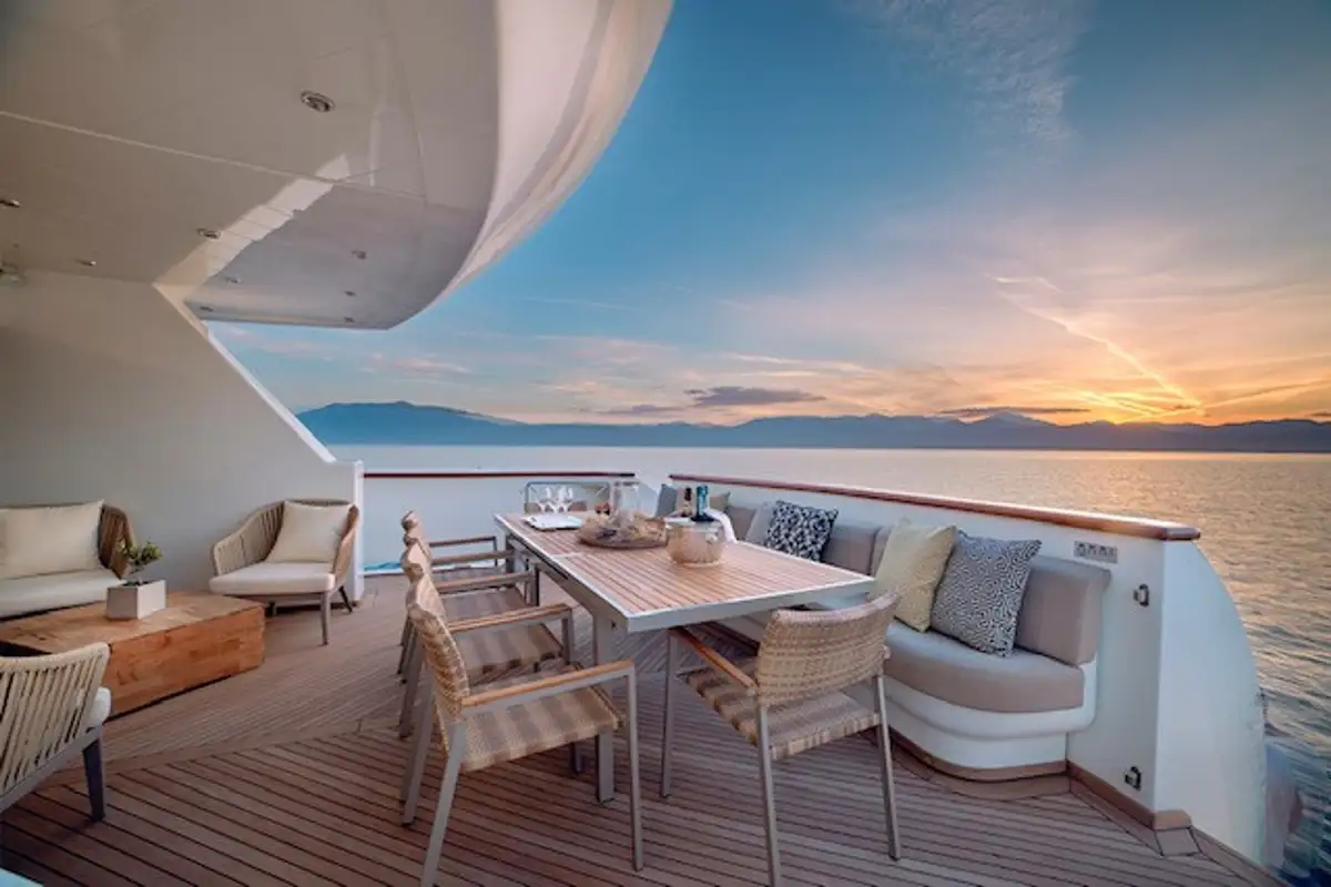 AQUILA’s sun deck is a glorious place to relax and take in your stunning location. It features two large sunpads and a spacious al fresco dining area. Here, you can enjoy leisurely lunches, sunset soirees, conversations and cocktails. You can enjoy breakfast and less formal dining in the cockpit as well as relax in the al fresco lounge area just ahead of the lounge. With far-reaching views aft, the cockpit offers a great vantage point for the waterborne activities.