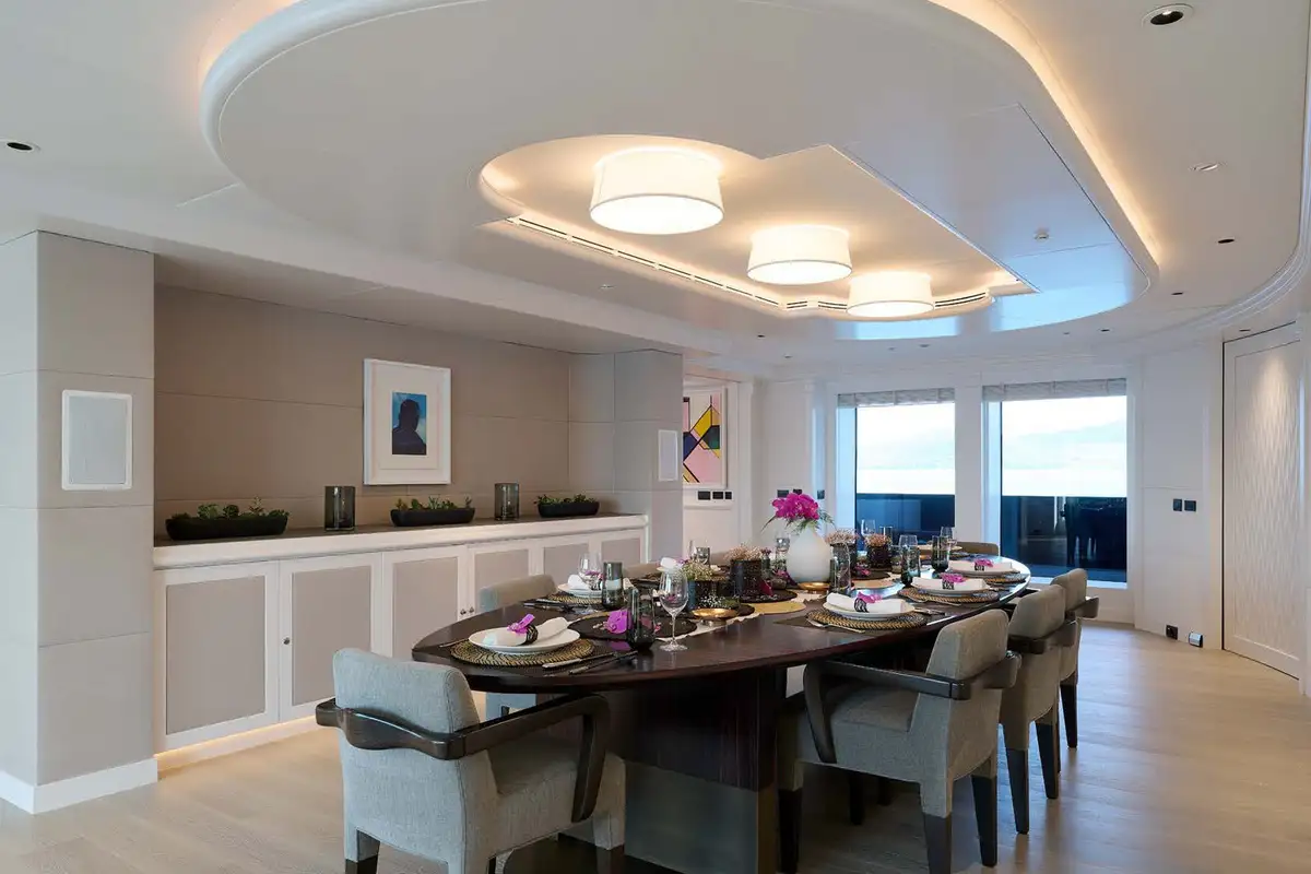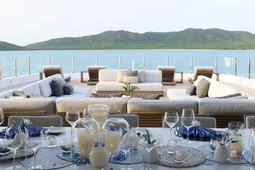 After cocktails on the sundeck to toast the sun setting on another wonderful day, will you head ashore to explore the vibe in the local bars, restaurants and nightclubs, or dress in your finest for a sumptuous dinner in the main deck’s formal dining room? After relaxing with your digestif on the main deck aft, take the elevator up to the sun deck where the crew has the outdoor cinema ready for you and your guests to enjoy the thrills of a movie under the stars.