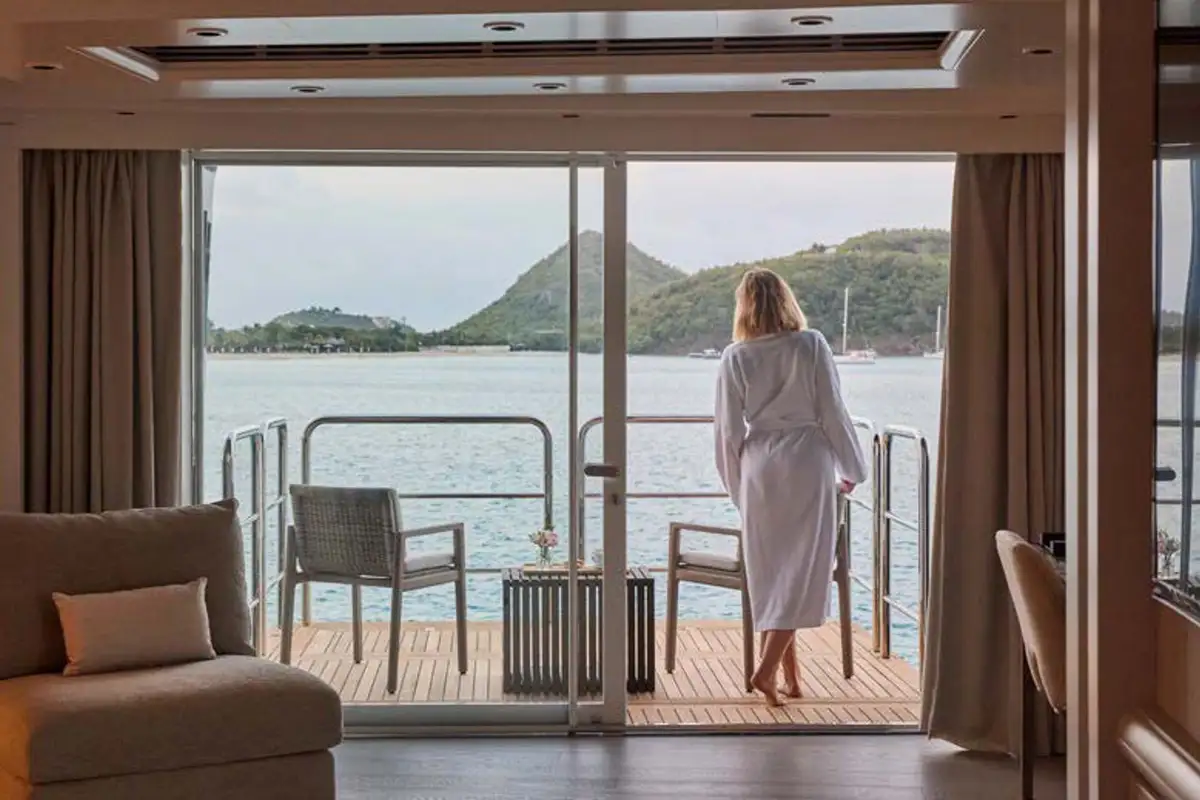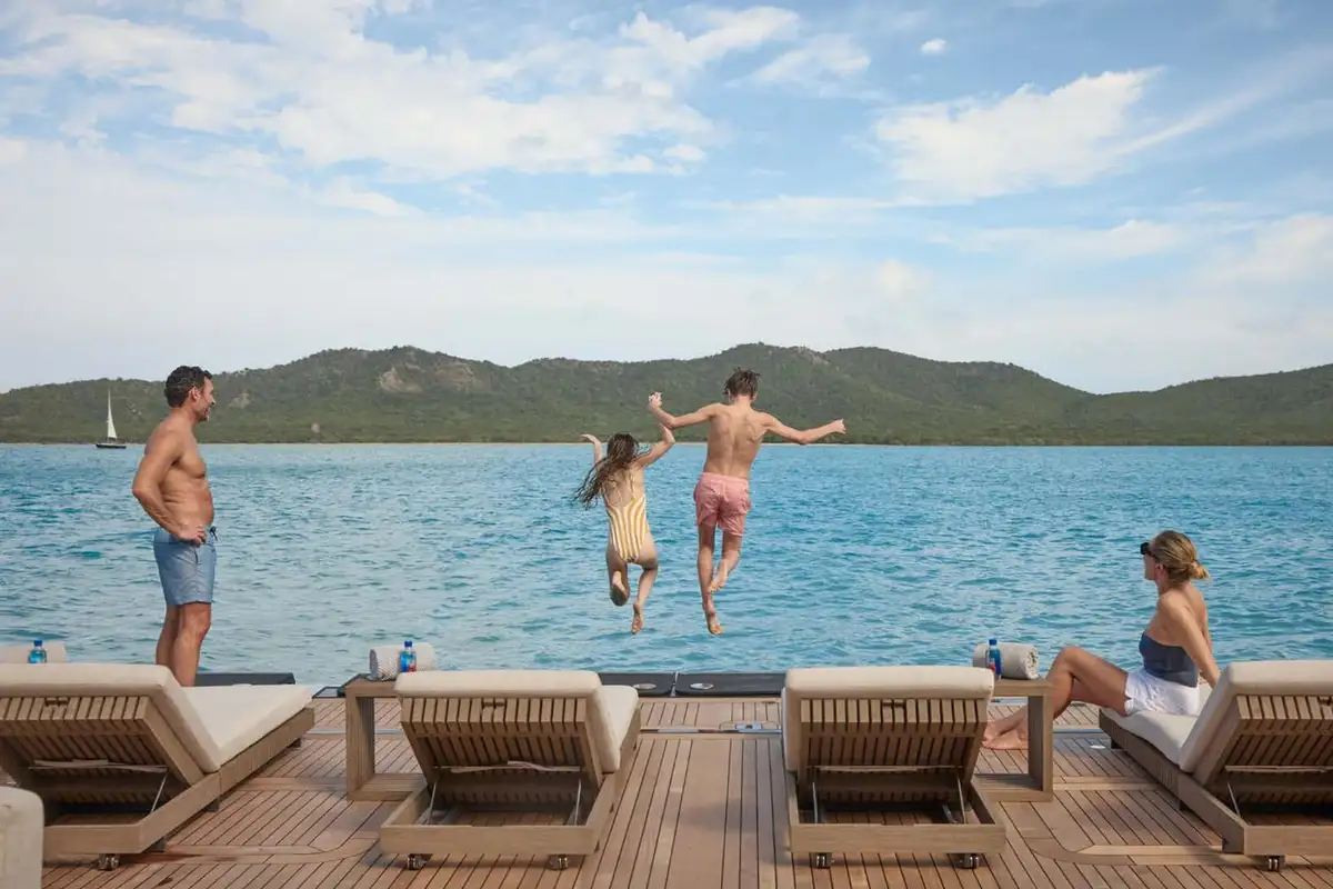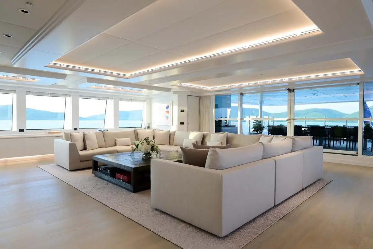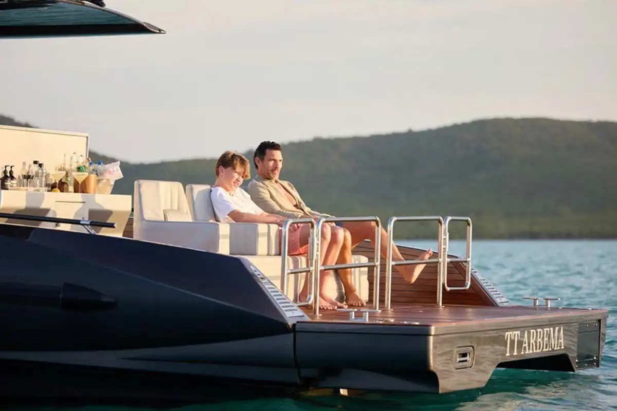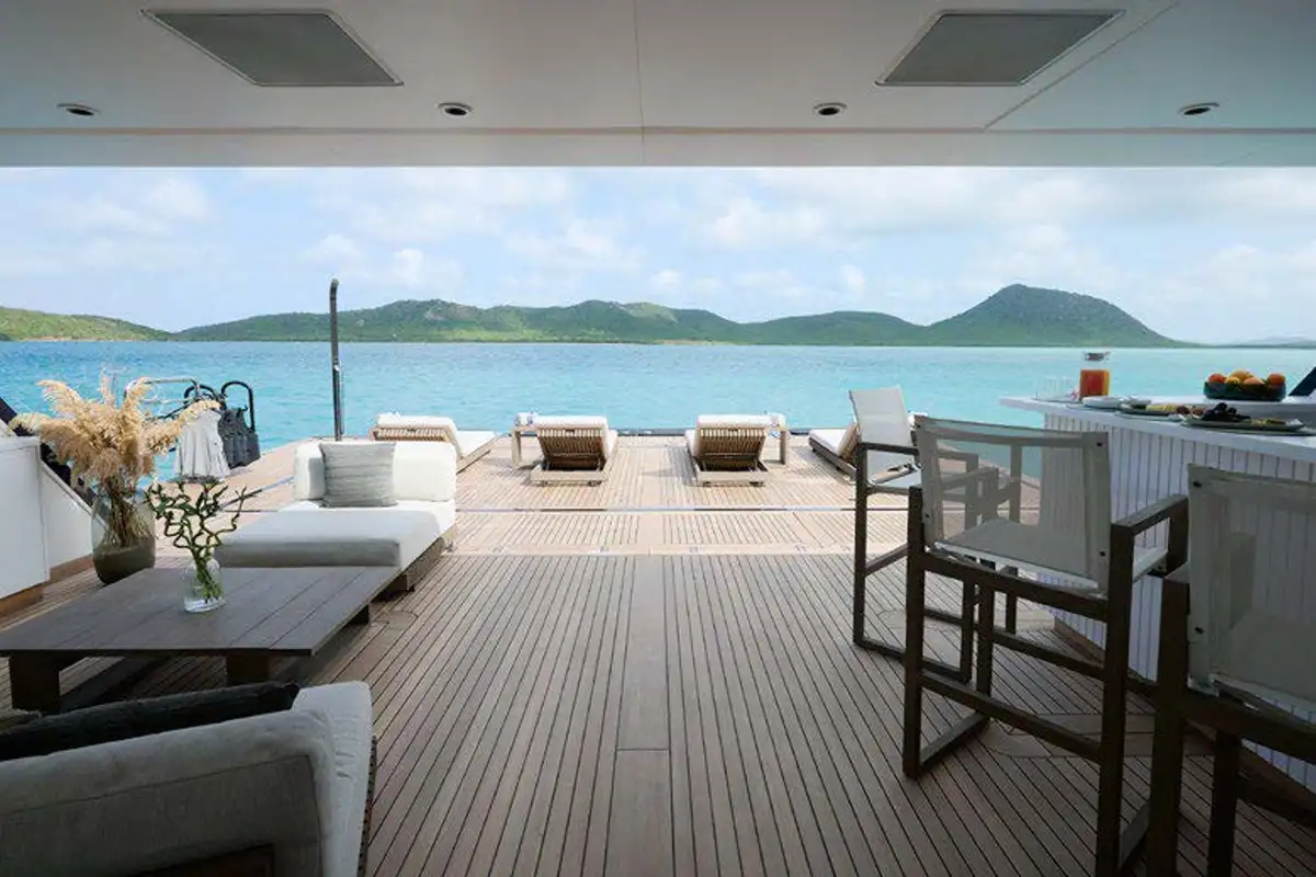 Take the elevator up to a huge sundeck, for a spectacular al fresco breakfast. You can soak in the jacuzzi, bathe in the sun lounge aft or take the inflatable slide down to water level and swim round to the beach club’s bar and lounge. The crew can’t wait to help you make the most of the toy selection. E-foils, e-surfs, SeaBobs, Sea-Doos, SUPs, kayaks, scuba, snorkel, tows and inflatables – even beach club golf with biodegradable balls.