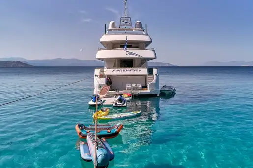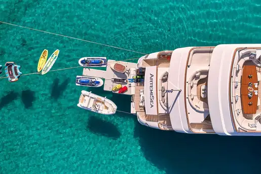 If entertainment is your priority, ARTEMISEA has an outdoor cinema forward of the sun deck jacuzzi, complete with wet bar, for movie nights under the stars and a huge 100in TV in the main deck media lounge.