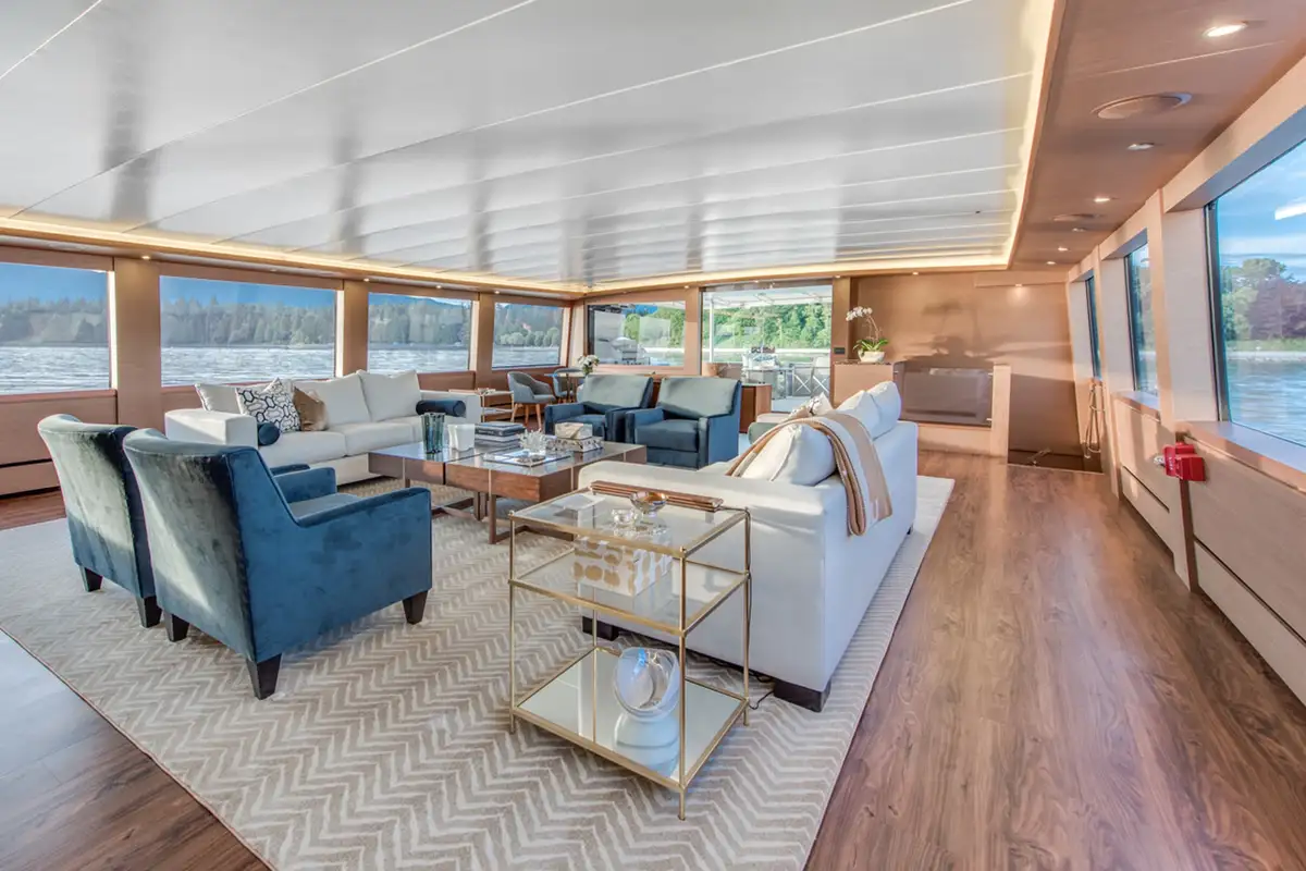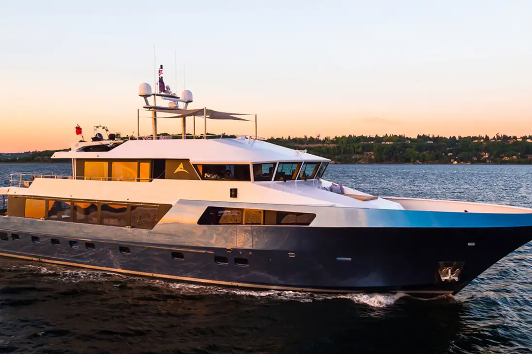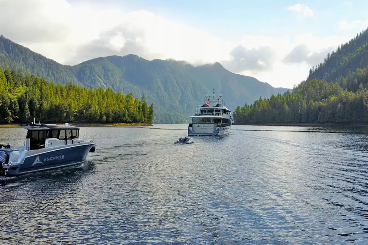 Motoryacht ASCENTE offers the ultimate luxury experience for those wanting to explore Canada’s stunning west coast. This unique 112-foot Westport yacht boats luxurious amenities such as a spacious salon and skylounge, relaxing deck areas with cozy firepits, and a 4-person jacuzzi. Accommodations for up to 12 guests can be found in 5 comfortable staterooms with a convertible sofa in the skylounge. The full beam primary stateroom features a jacuzzi tub, glass shower, opening ports, and electric fireplace. Four VIP staterooms each with queen berths feature glass showers, large vanities, and electric fireplaces. The yacht also comes equipped with a variety of water toys, including kayaks, paddleboards, and wet suites, allowing you to explore the coast's crystal-clear waters. You will enjoy exploring remote and secluded destinations such as the Great Bear Rainforest and Princess Louisa Inlet with ease. Whether you want to fish for salmon, watch for whales, or simply relax in the sun while enjoying breathtaking scenery, chartering Motoryacht ASCENTE is the ultimate way to experience the beauty of British Columbia.