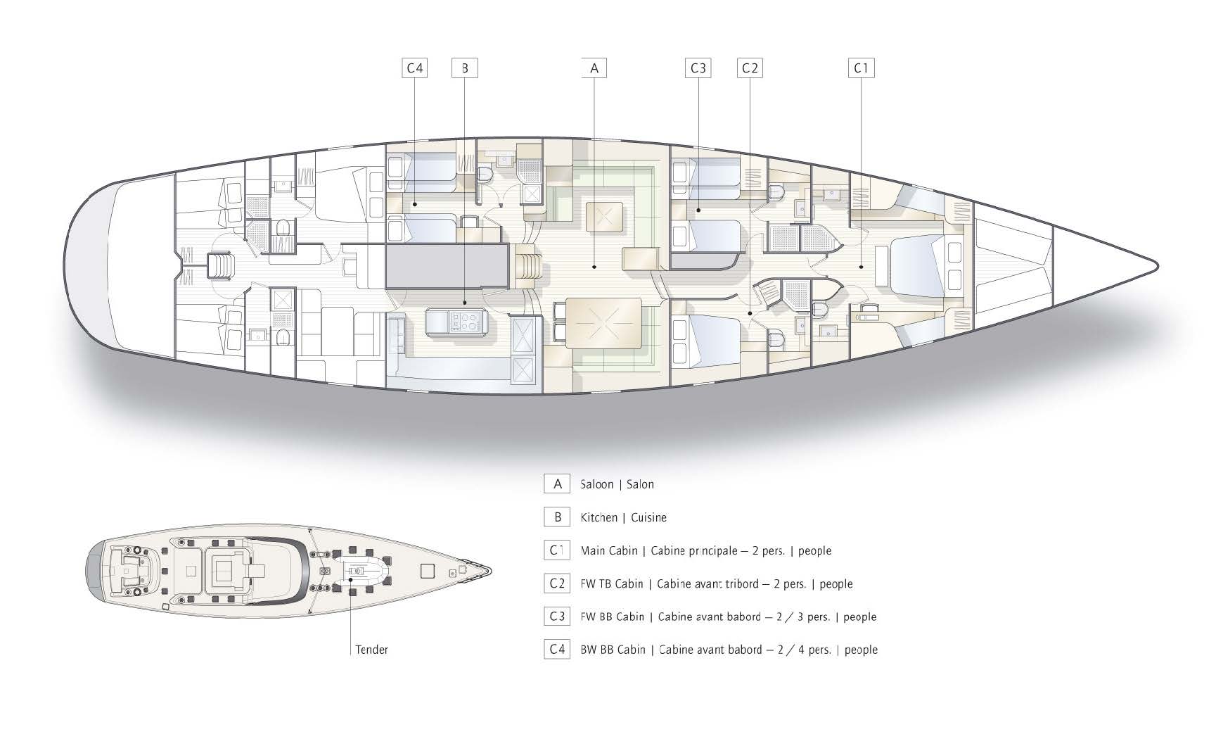 | Cabin types | 4 (2 × double, 2 × double/twin, 3 × additional berths) |