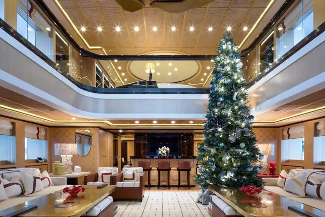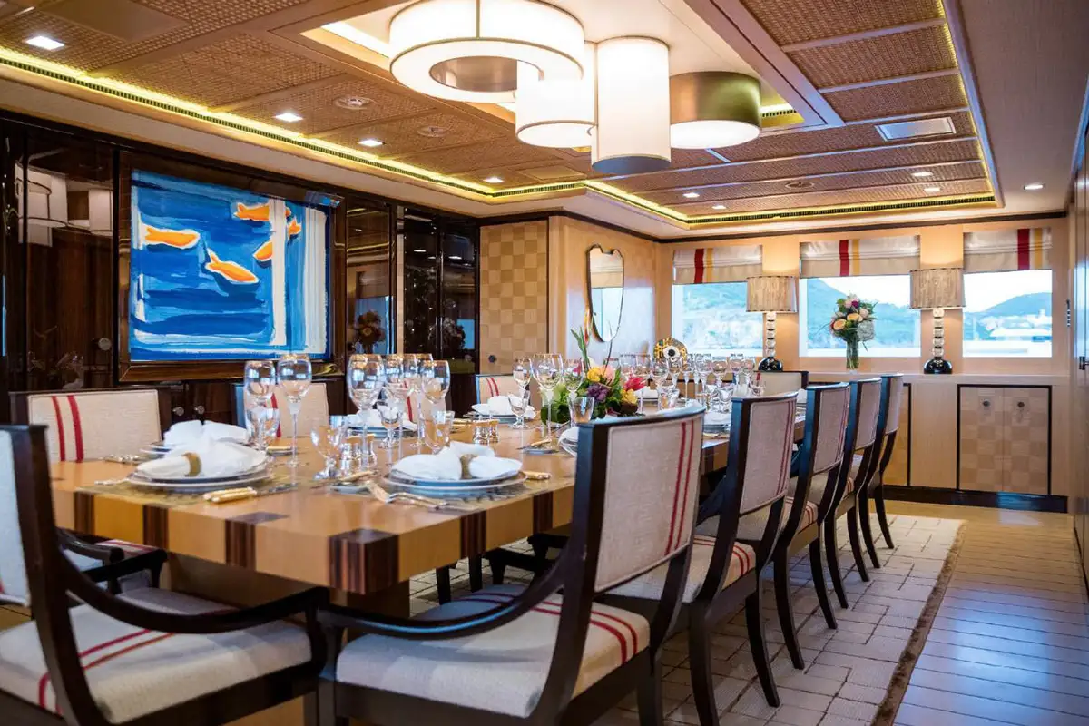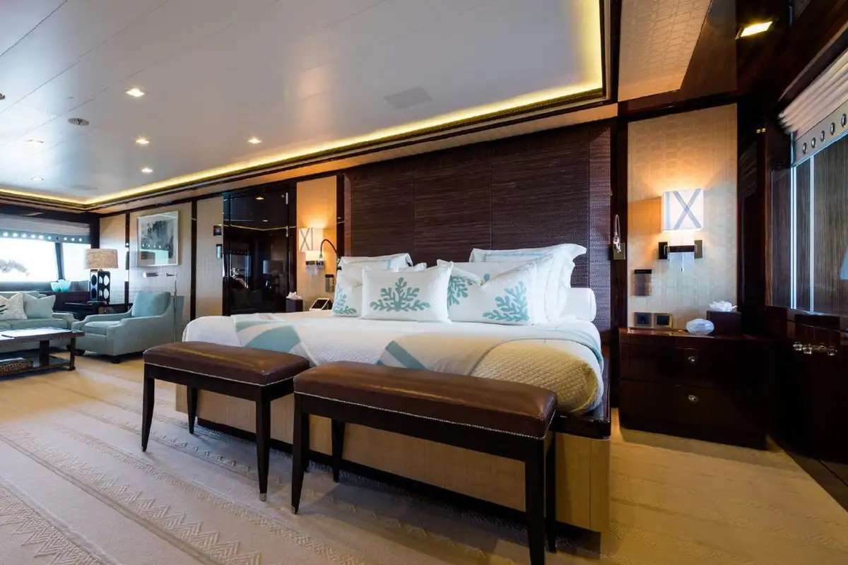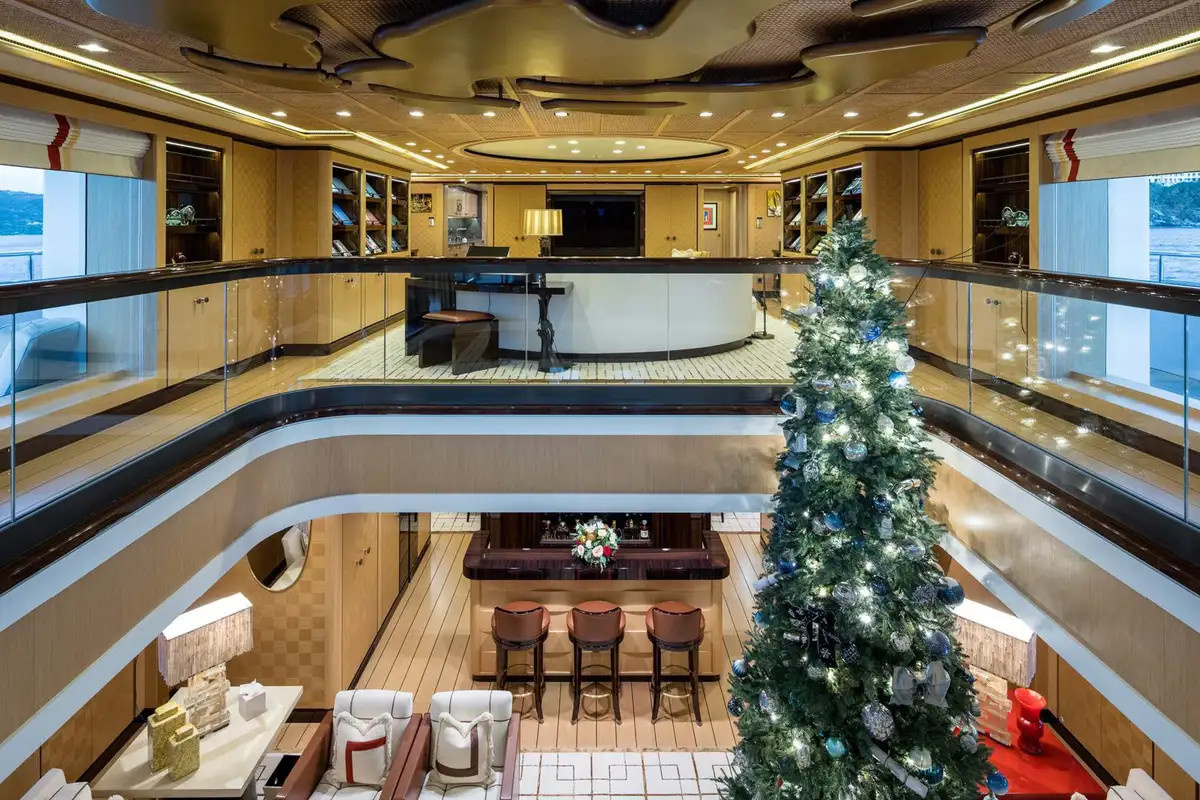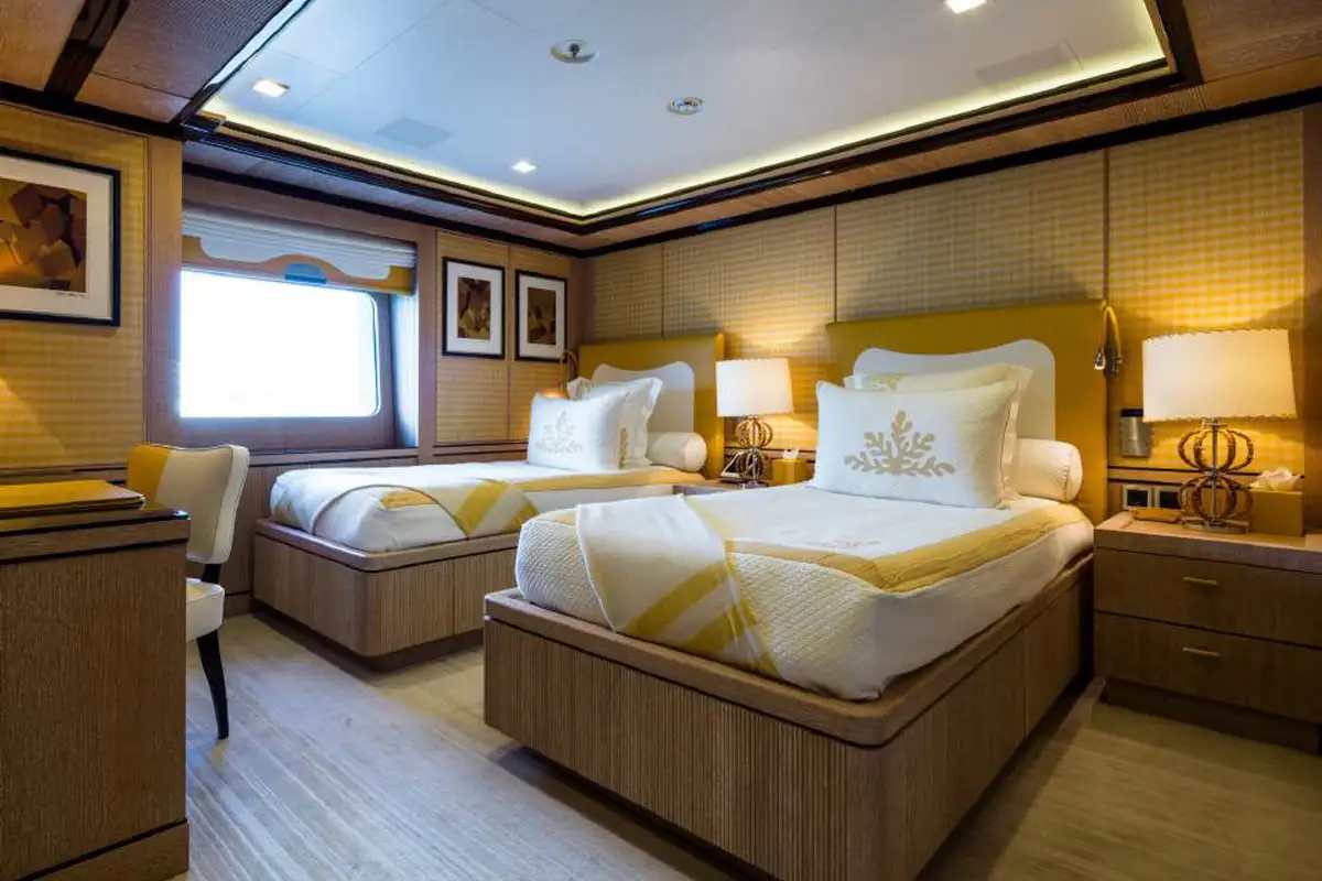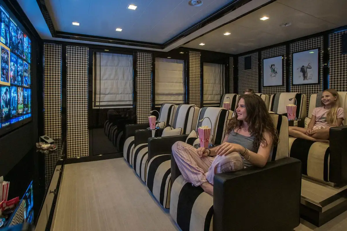 Forward on the main deck is a full beam VIP suite, two double cabins and two double/twin cabins, providing flexible, family friendly accommodation with great views through large main deck windows. Add to that the 3D cinema on the lower deck, an elevator serving lower to bridge decks, a limo tender, towed tender and a large locker full of toys, and you have a week of unforgettable family memories just waiting to be made.
