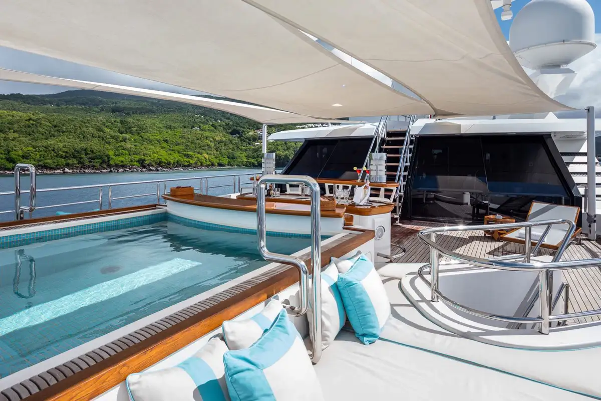 - Jacuzzi on the upper deck and private jacuzzi in the master cabin