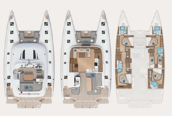 Step onboard AZUL, a 16.6m (55ft) sailing catamaran where you can enjoy her expansive deck space and the superior stability of the catamaran design. Unwind with leisurely afternoons cruising under sail and starlit evenings at anchor. AZUL offers your party four gorgeous en suite double guest suites, which are spread across two hulls in all four corners for greater privacy.
