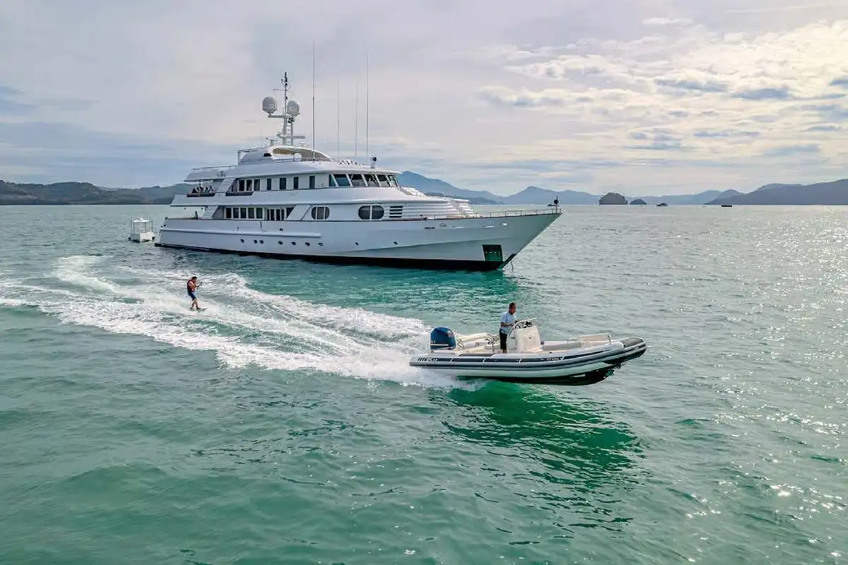 In terms of watersports, there is a 7m (23ft) custom tender and a 6.2m (20.3ft) RIB, a waverunner, jetski, wakeboard as well as a choice of inflatable tows.