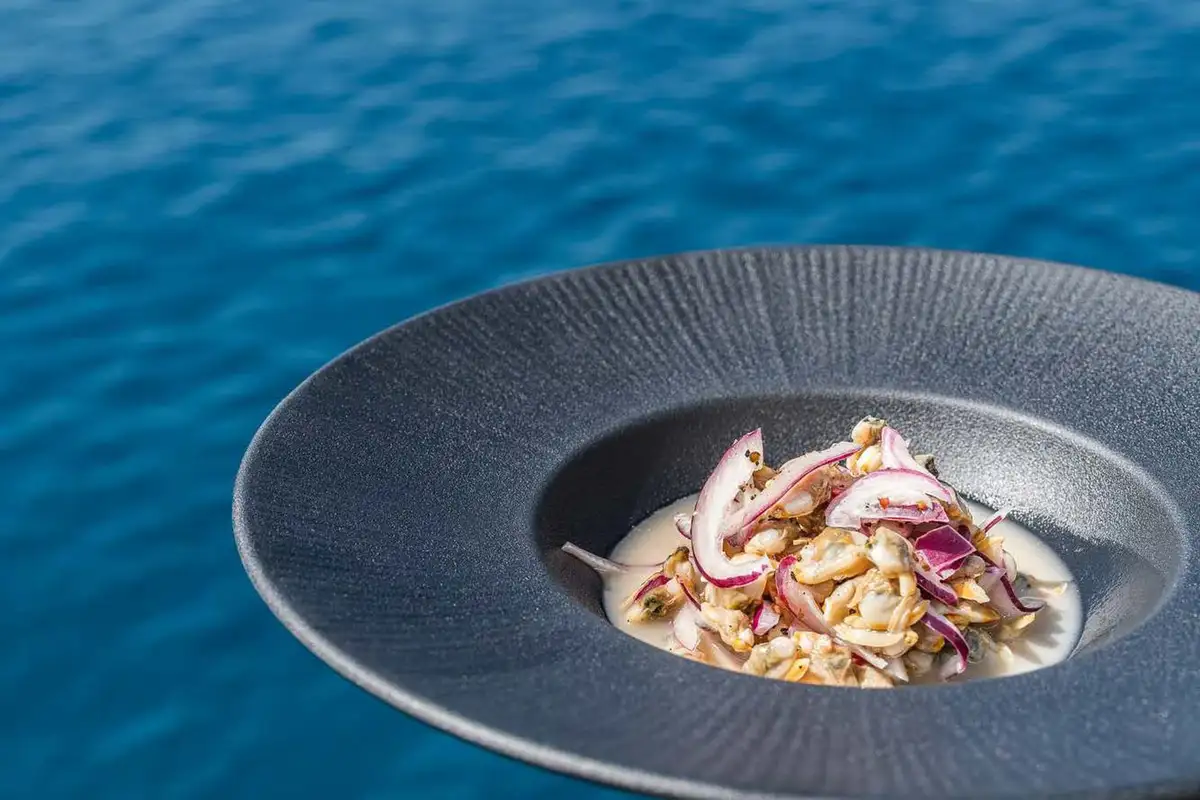 The exceptionally diverse cuisines of Sardinia, fresh coastal seafood from local waters to hearty meats and homemade pastas, reflect the island's rich history with influences from the Phoenicians to the Spanish, accompanied by spectacular views over Romazzino Bay.