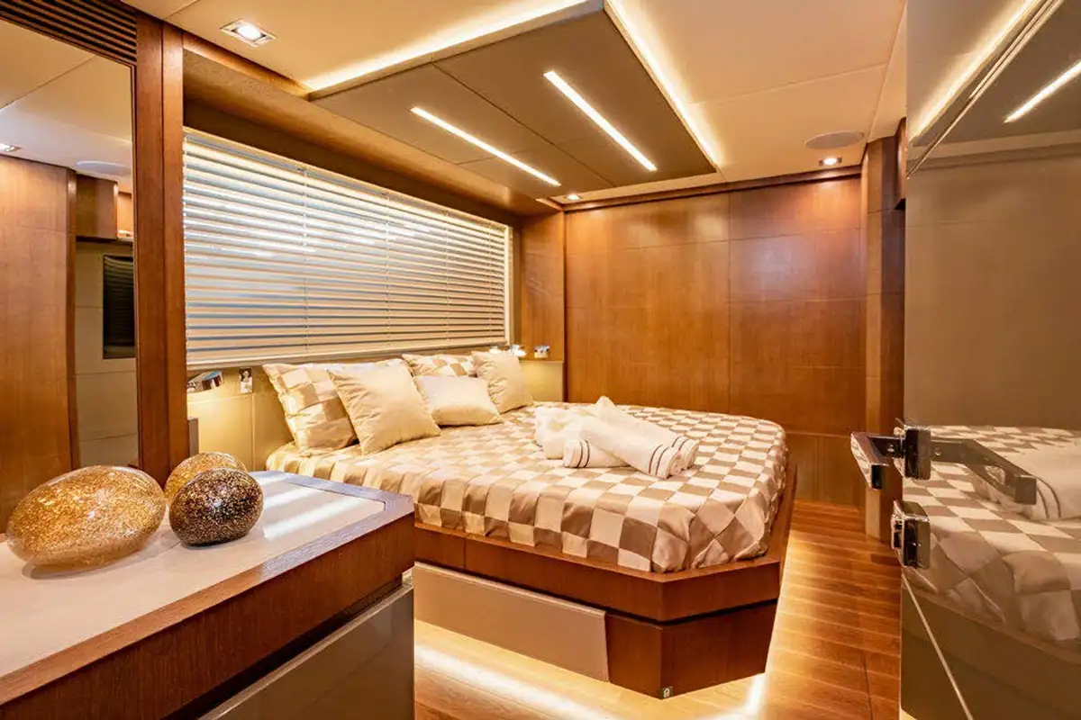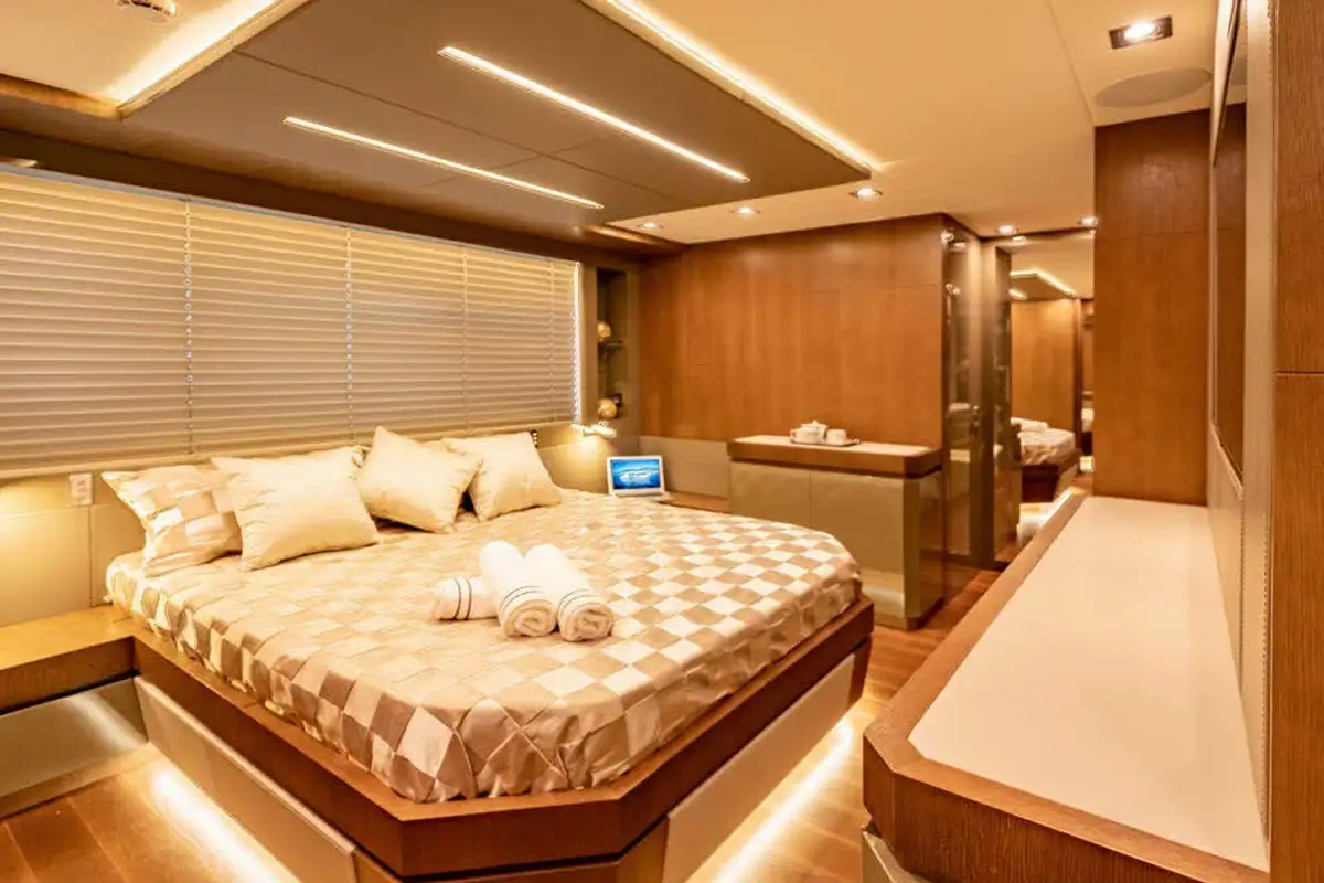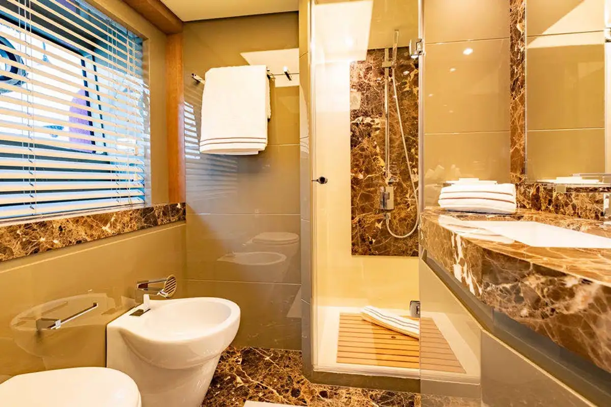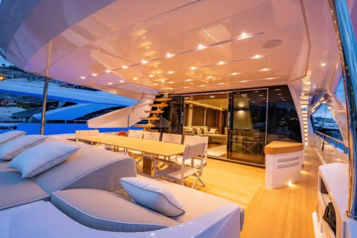 Every detail on board BACCARAT is crafted with elegance and ease in mind. Her thoughtfully designed outdoor spaces invite relaxation, whether you’re unwinding in the jacuzzi, soaking up the sun on the foredeck loungers, or enjoying a slow lunch on the aft deck. Inside, expect chic interiors, modern amenities, and a light, open feel throughout.