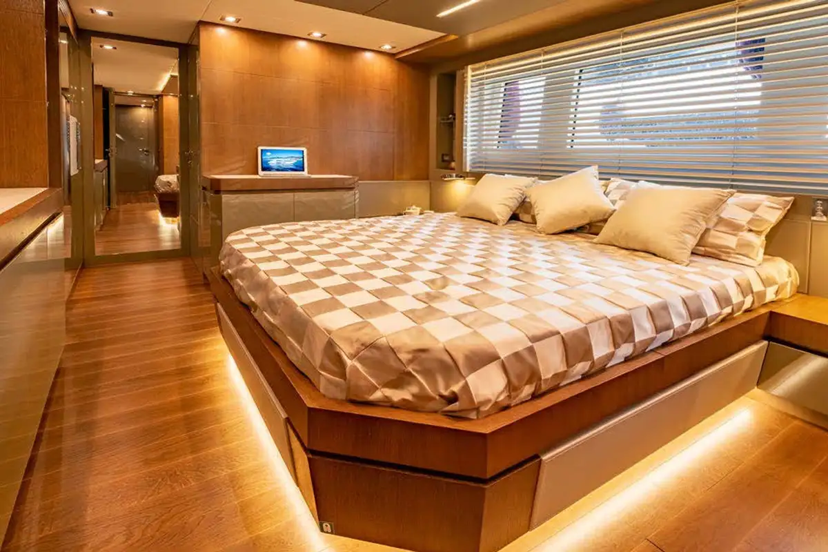 Wi-Fi keeps you connected, while stabilisers ensure comfort whether you’re at anchor or underway – so you can simply relax and enjoy the view.