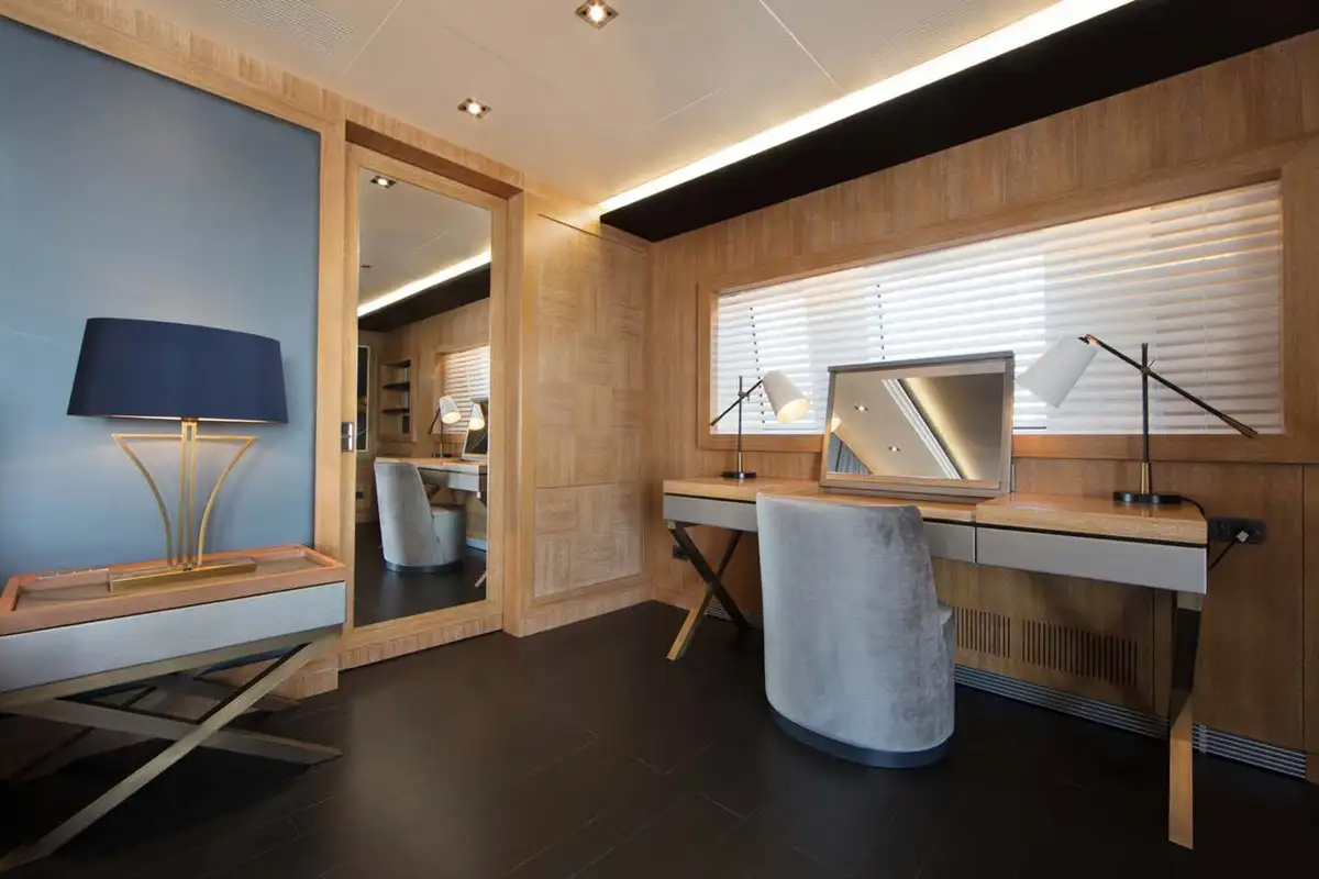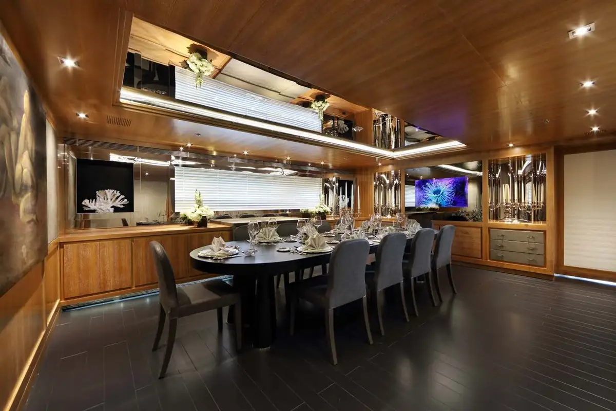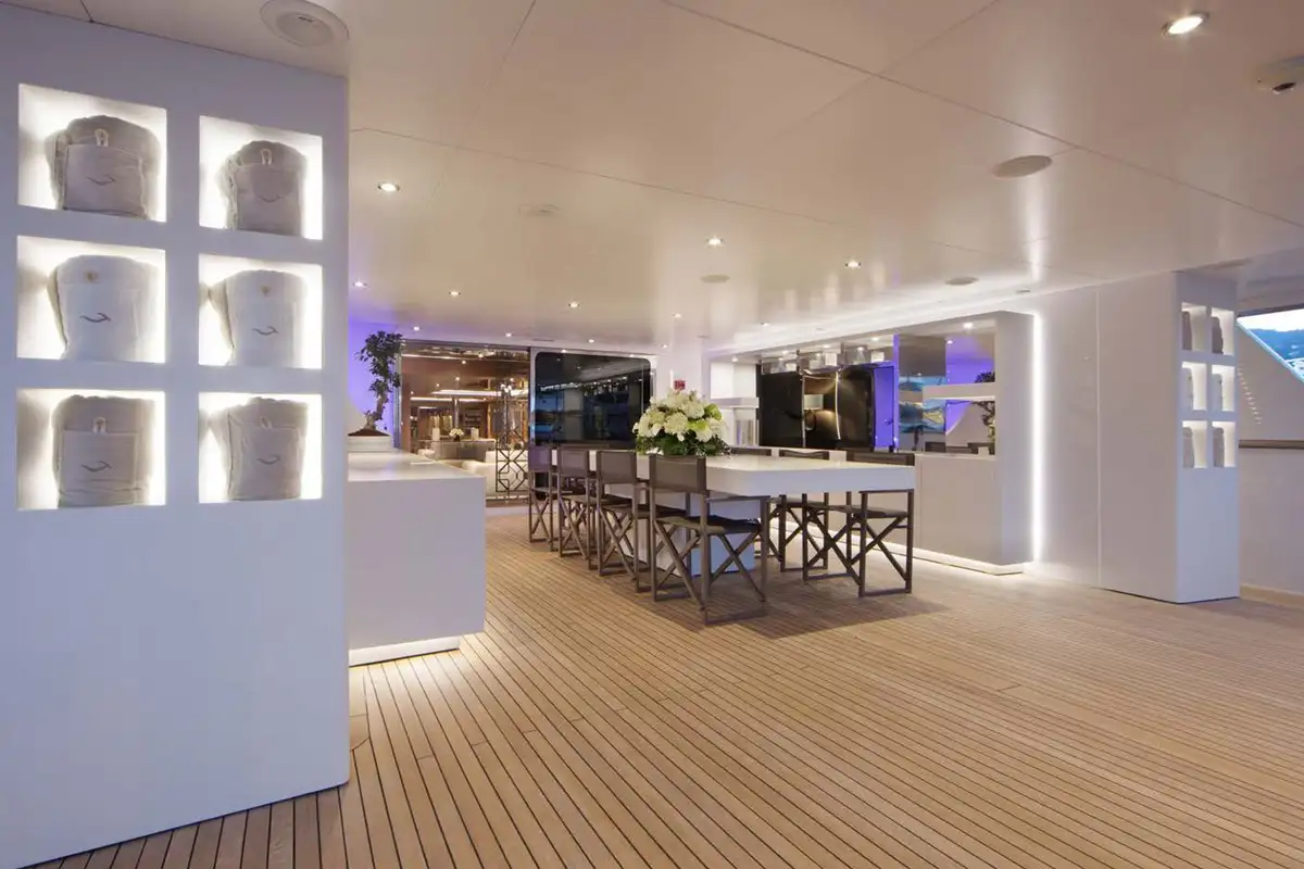 In the late afternoon when your energy flags, the yacht’s wellness area includes a large hammam, after which you could relax in the jacuzzi and enjoy a sundowner, or head to the main deck bar. Fully refreshed for dinner, you may either choose to dine in the formal setting on the main deck, or the more popular main deck aft for another al fresco meal – after all, the outdoor lifestyle is what yachting is all about.