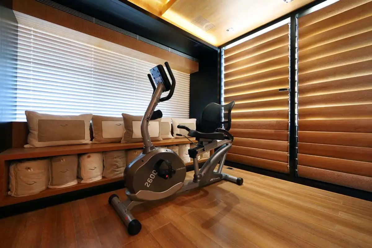 From the moment you step on board BEATRIX you will be surrounded by everything you could desire and more. Whether you begin your day with a workout in the air-conditioned gym located on the sun deck, or simply enjoy a coffee on your own private deck area aft of the master cabin, the choice is yours. When it’s time for breakfast, the yacht’s al fresco dining areas are plentiful. Choose to join your fellow charter guests on the owner’s deck aft area, where comfortable sofas surround a large coffee table, or on the main deck aft where a table for more formal dining is located in an indoor/outdoor area, fully shaded from the elements. This is also a superb location for lunch when the heat of the sun is at its strongest.