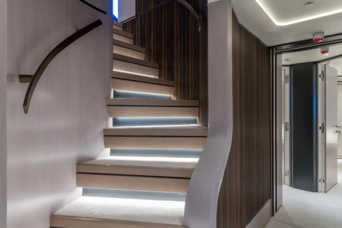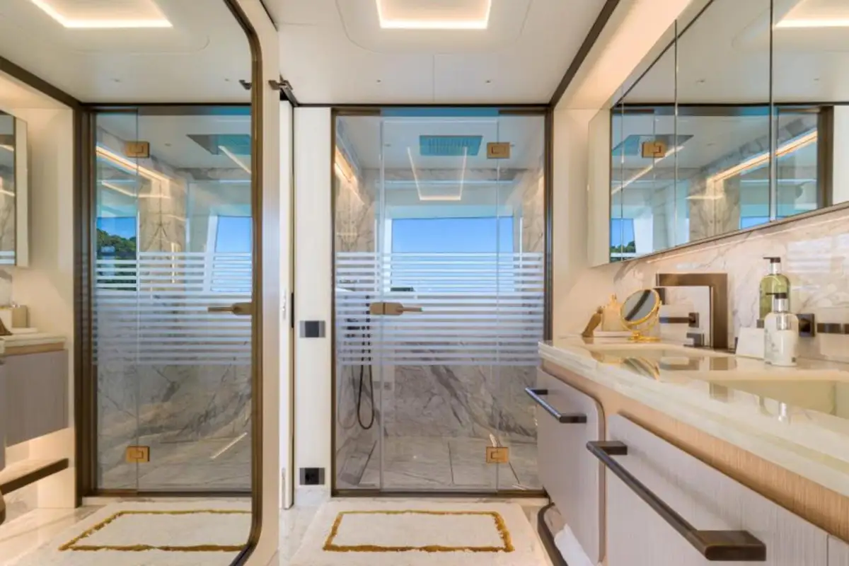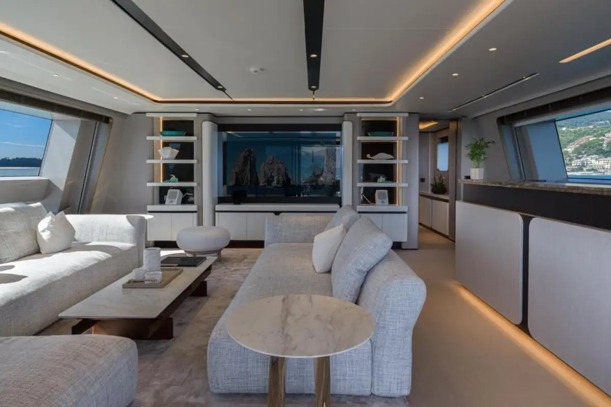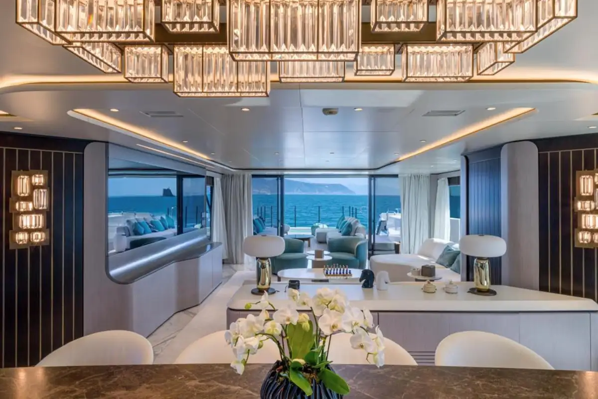 LEE exudes style, with a light, contemporary and welcoming feel throughout; large floor-to-ceiling windows in the lounge areas allow views of amazing surroundings to enter along with masses of natural light. The full-beam master suite has large picture windows and a large fold-down balcony to starboard that extends the suite to give you a private space to soak up your location.