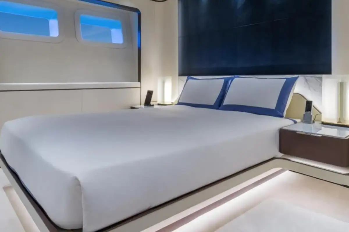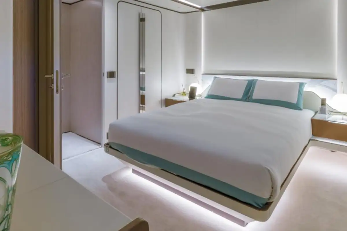 LEE’s style has not been skimped on your guests either. The guest suites are light and stylish, with a generous use of indirect lighting to enhance the harmonious feel of these beautiful spaces. With a double VIP suite, two double suites, a twin-berth suite, and a pullman berth, the versatile arrangement works for friends and family alike.