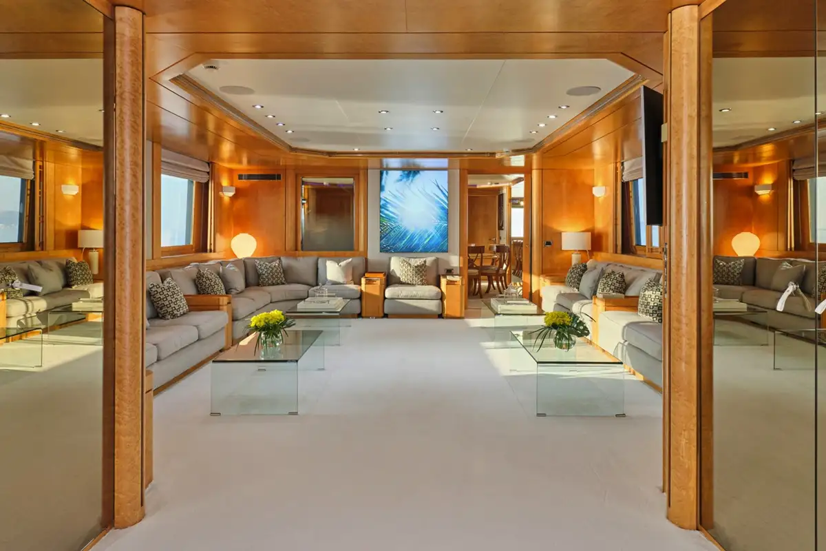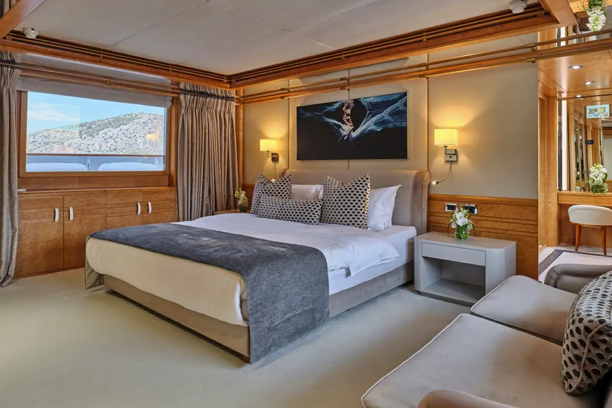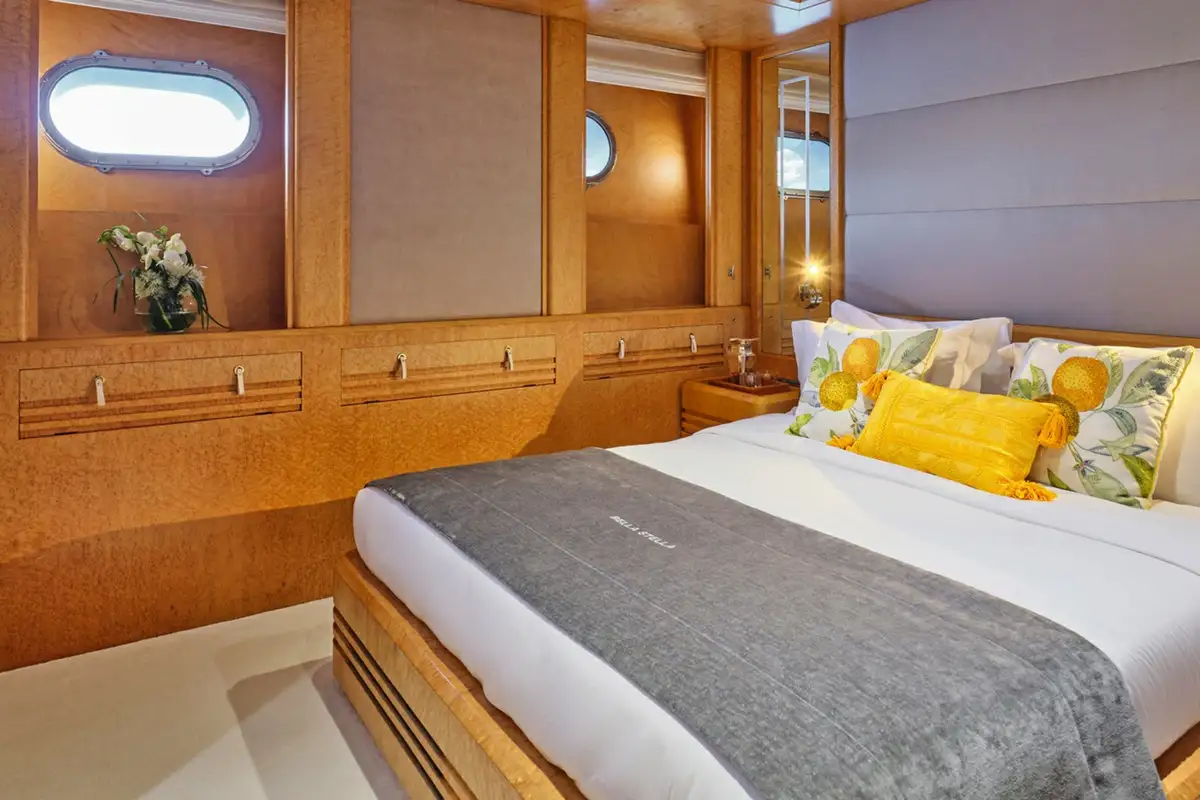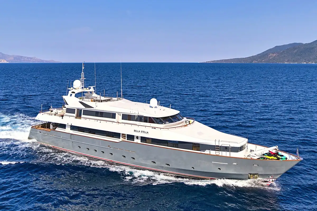 BELLA STELLA offers a modern and upgraded feel following the completion of a thorough refit. Her original quality build by CRN includes a solid steel hull and extremely spacious guest accommodations and areas, and having most of her interior changed by designer Sara Economou, she looks fabulous and very refreshed with ocean inspired art and grey hues now welcoming guests in style.