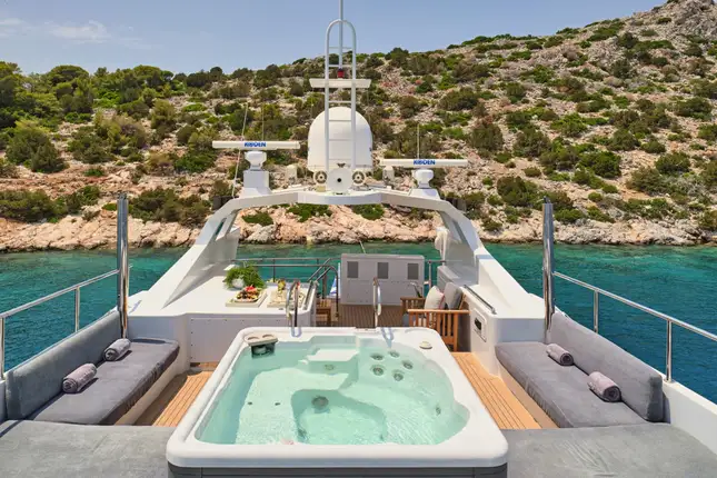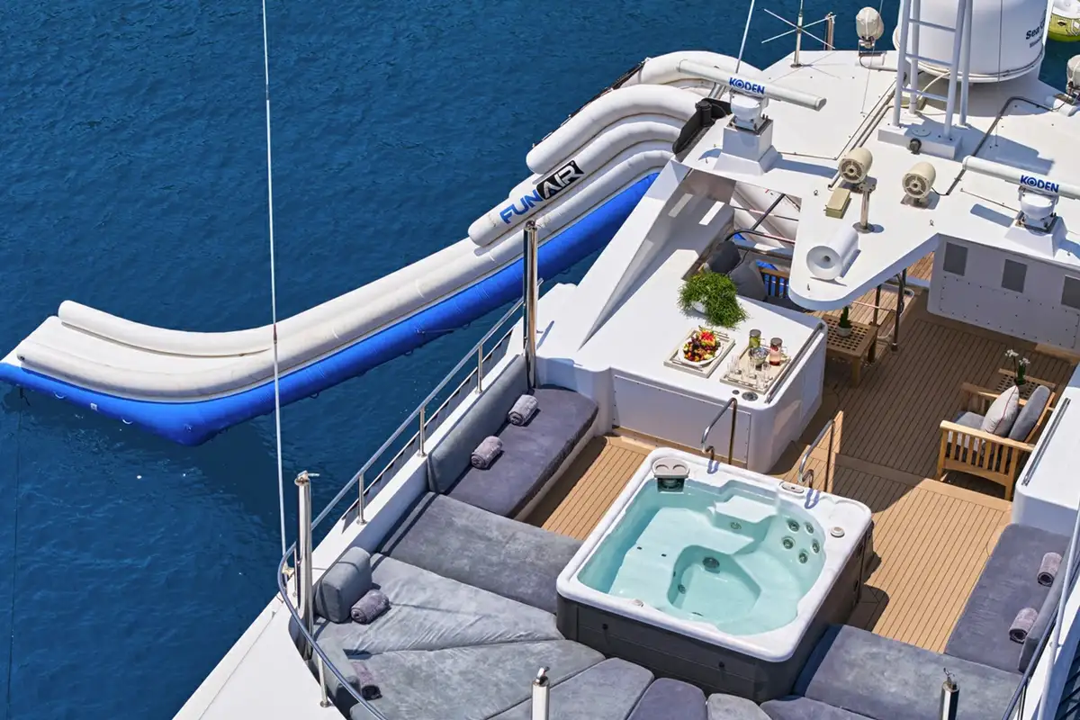 The newly boosted water toy inventory makes BELLA STELLA the ultimate family yacht in Greece! The vast selection of toys among with other items such as the portable BBQ and the inflatable platform with sofa and chairs next to the pool promises unforgettable memories on board the yacht.