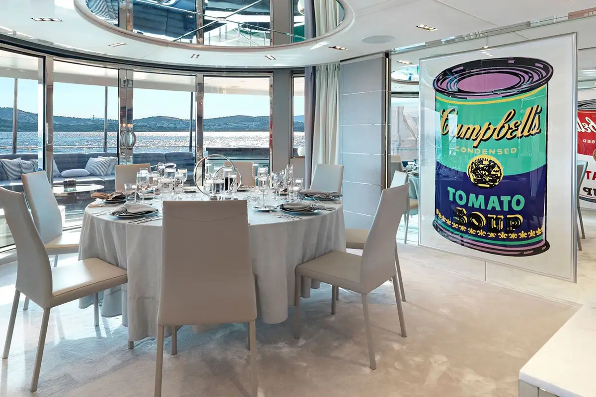 If you’re looking for a smart, spacious, swift and stylish yacht for your charter holiday, BLISS ticks all of those boxes and more. Built by the elite Heesen shipyard and comprehensively upgraded in a total refit very recently, she’s a 44-metre tri-deck vessel with a generous amount of living space, inside and out. Her bright and fresh interior is a delight, with iconic 1960s pop art and a finely crafted finish in luxury materials throughout. Her 25-knot top speed offers twice the cruising range of a typical displacement yacht.