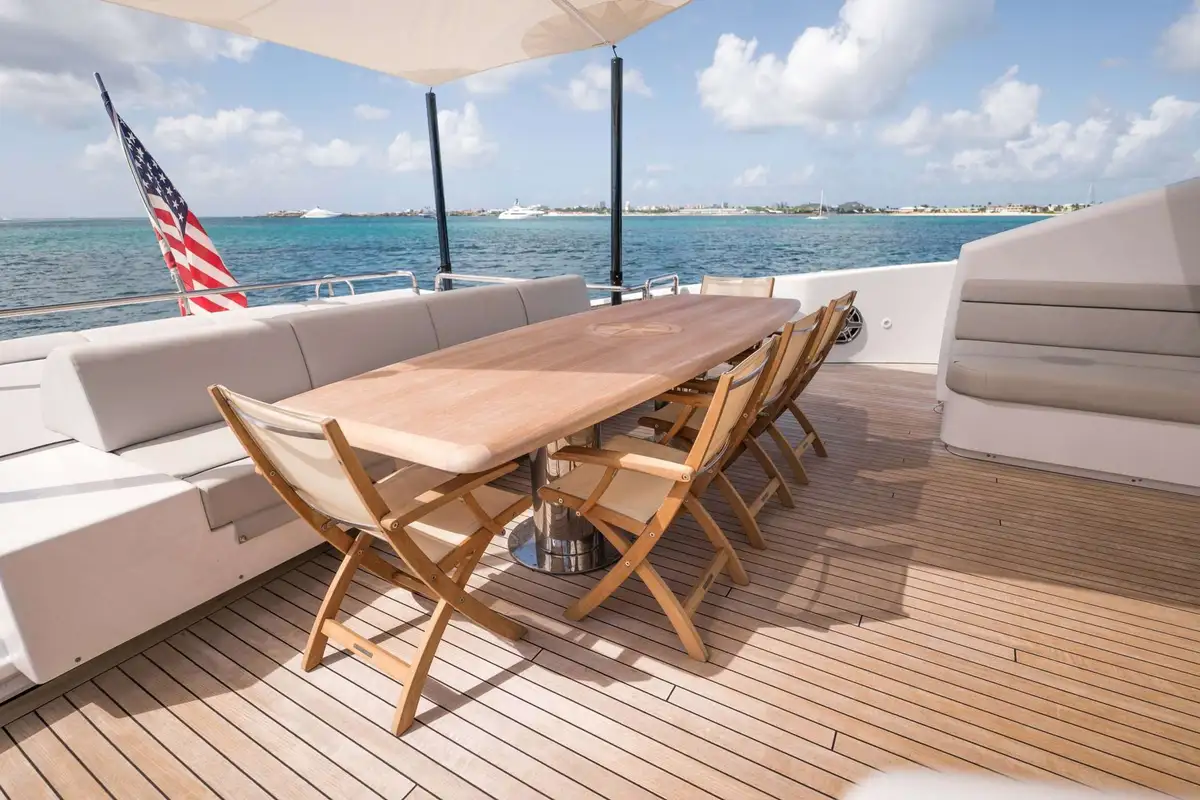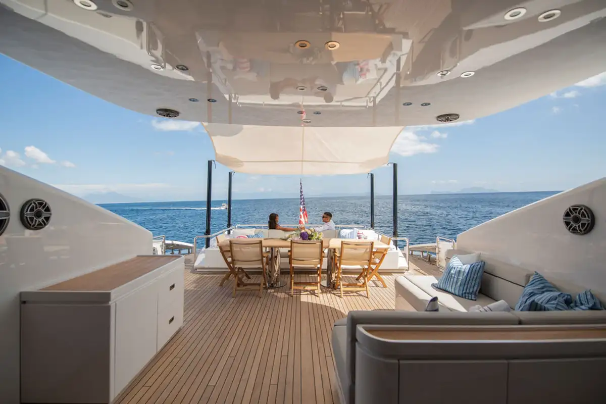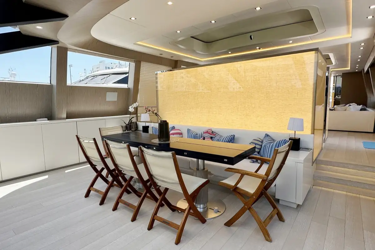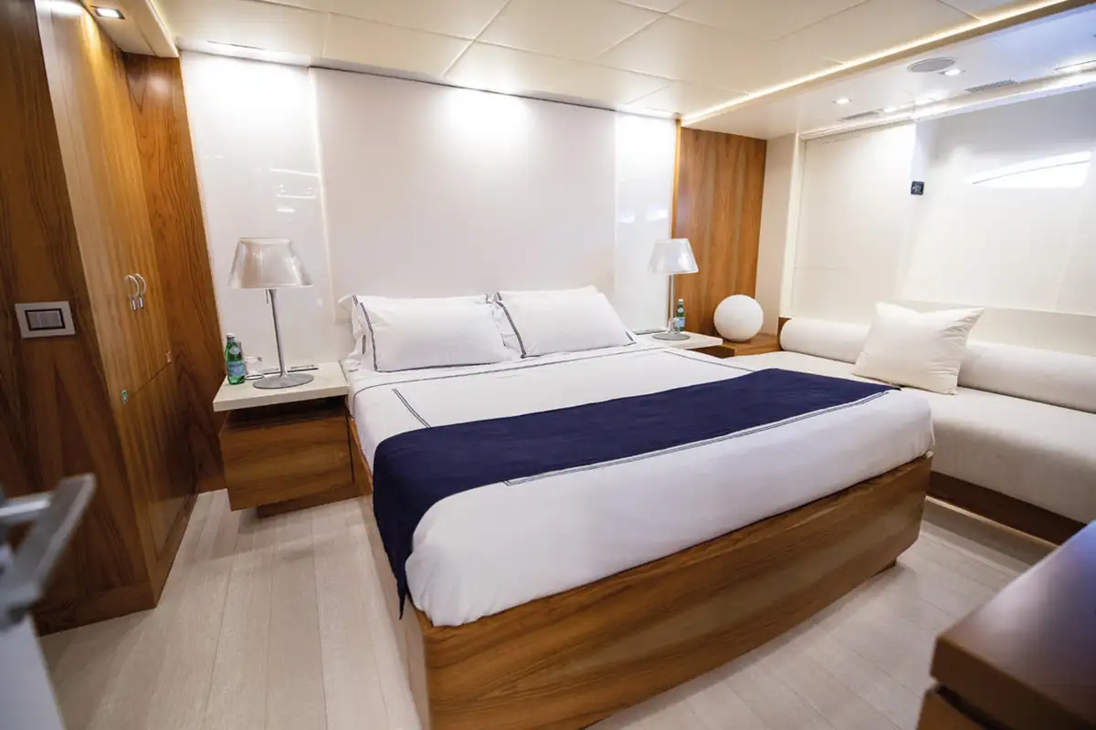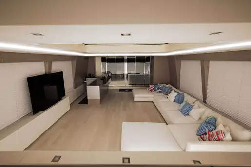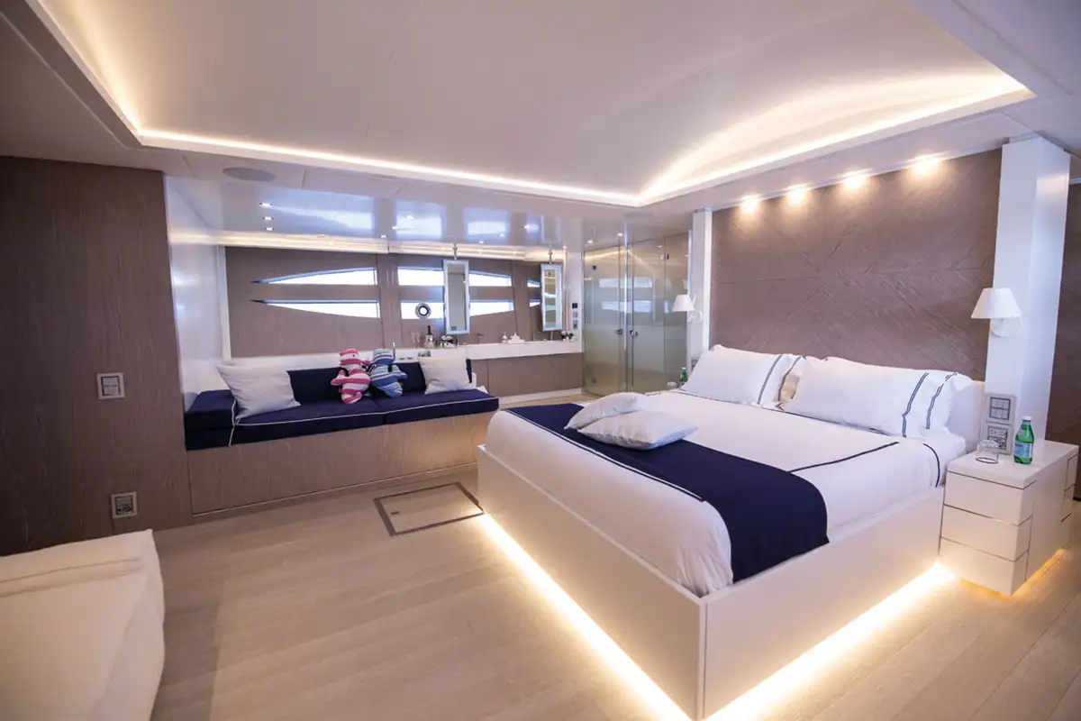 As the evening draws in, you and your guests can take advantage of BLUE DEVIL’s expansive lounge. There’s space to relax on the plush sofas or head for the formal dining area to enjoy the fine culinary creations from the yacht’s professional chef.