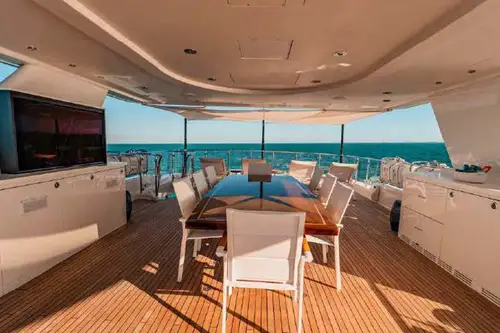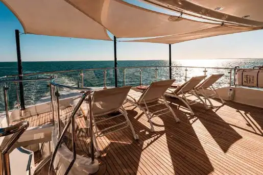 Step aboard the newly refit Blue Time, a 130-foot luxury motor yacht that blends timeless elegance with modern sophistication. Fresh from a comprehensive 2024 refit, Blue Time is better than ever—boasting upgraded interiors, cutting-edge technology, and enhanced amenities that set the stage for an unforgettable yachting experience. Designed for both comfort and performance, Blue Time accommodates up to 10 guests in five beautifully appointed staterooms, including four king suites and a versatile twin cabin, ideal for families or mixed groups. With a professional 7-person crew led by veteran charter Captain David, every detail of your journey is expertly handled.