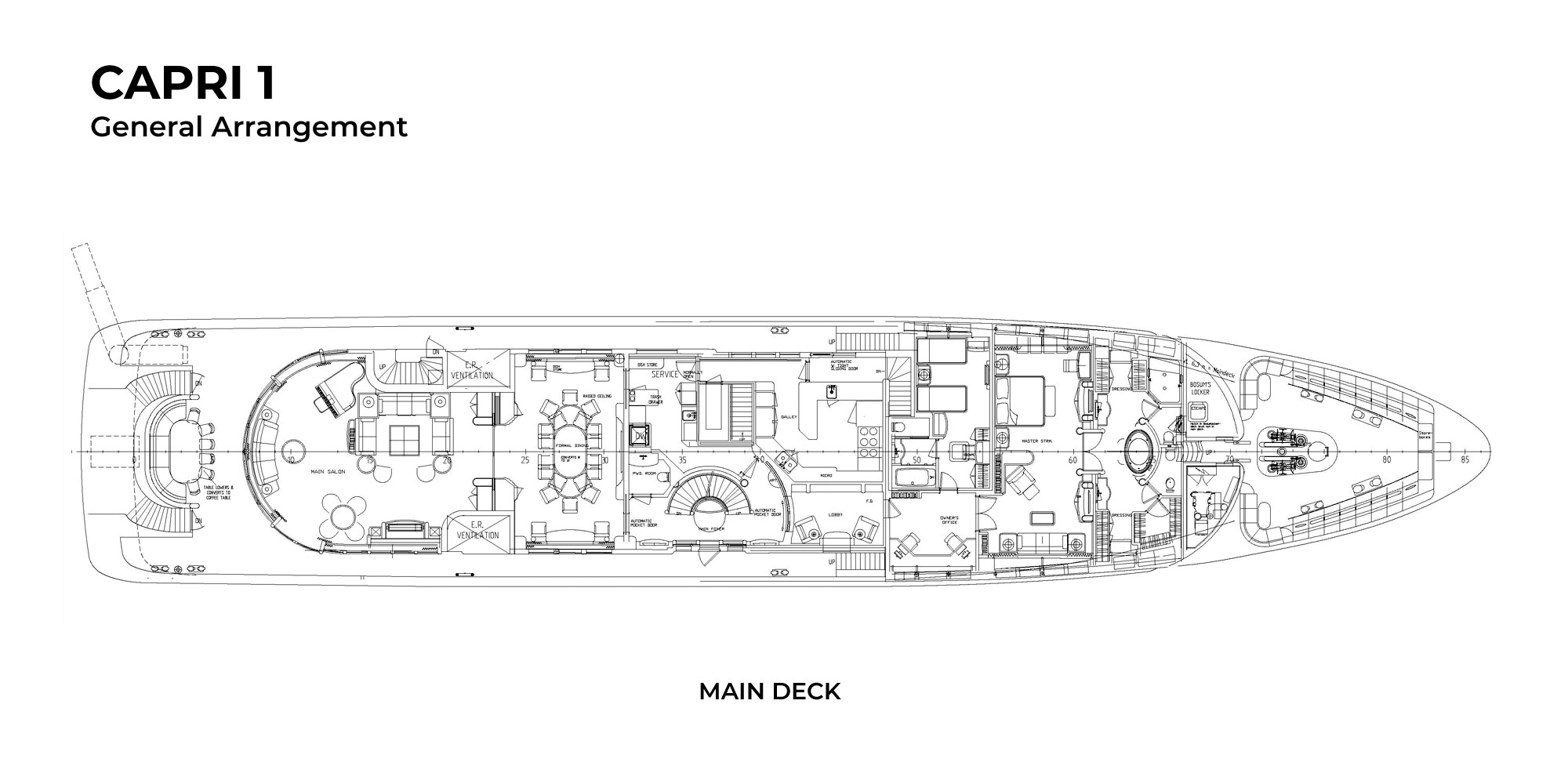 CAPRI I is built to the highest standards by Lurssen, features exceptional craftsmanship throughout , equipped with zero speed stabilizers to ensure a smooth cruise.