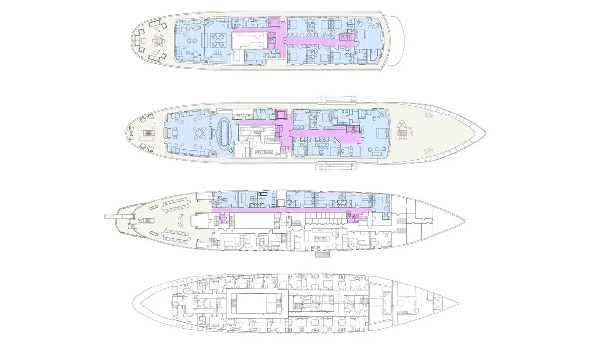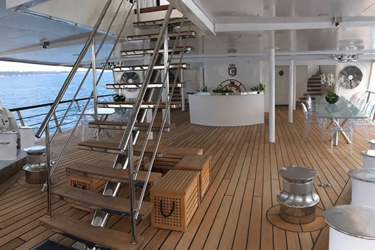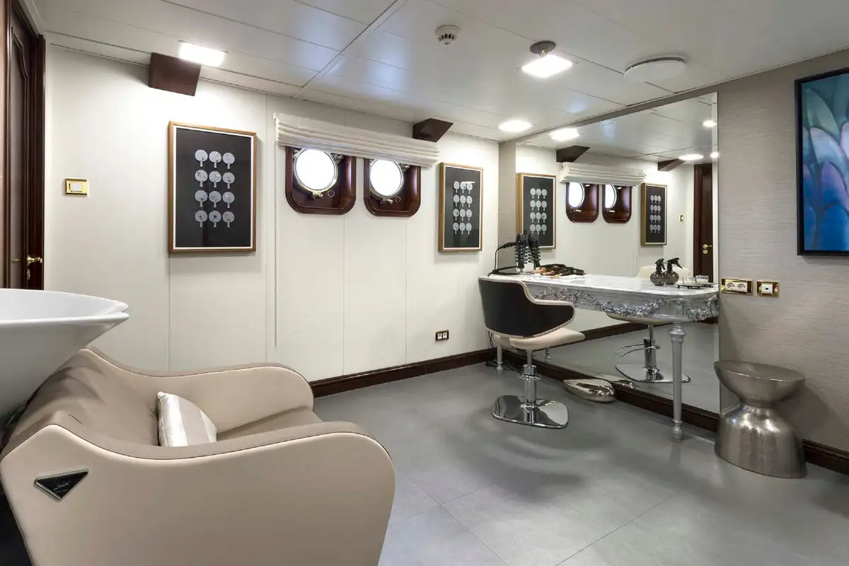 On C Deck you’ll find the fully equipped beauty parlour, the separate massage room and the onboard hospital, plus more cabins for guests and their staff. The whole crew and service area is completely self-contained on D Deck, further enhancing your privacy on board.