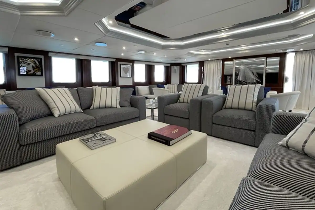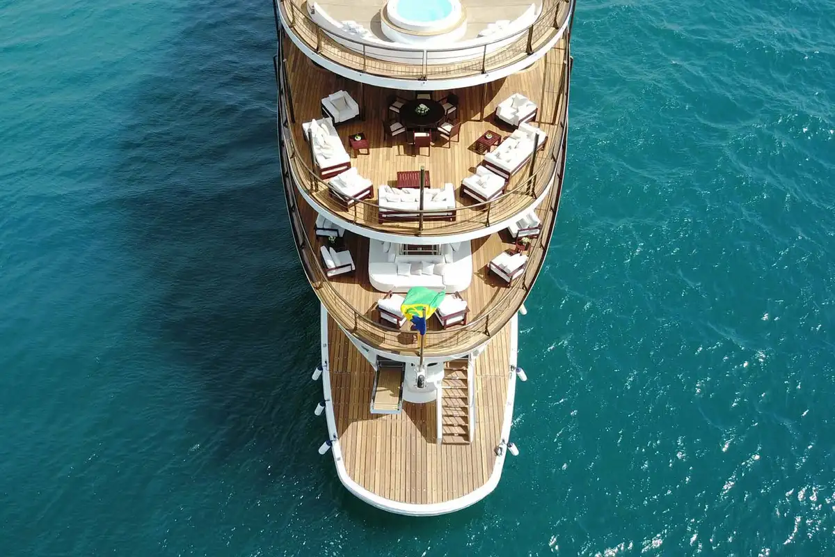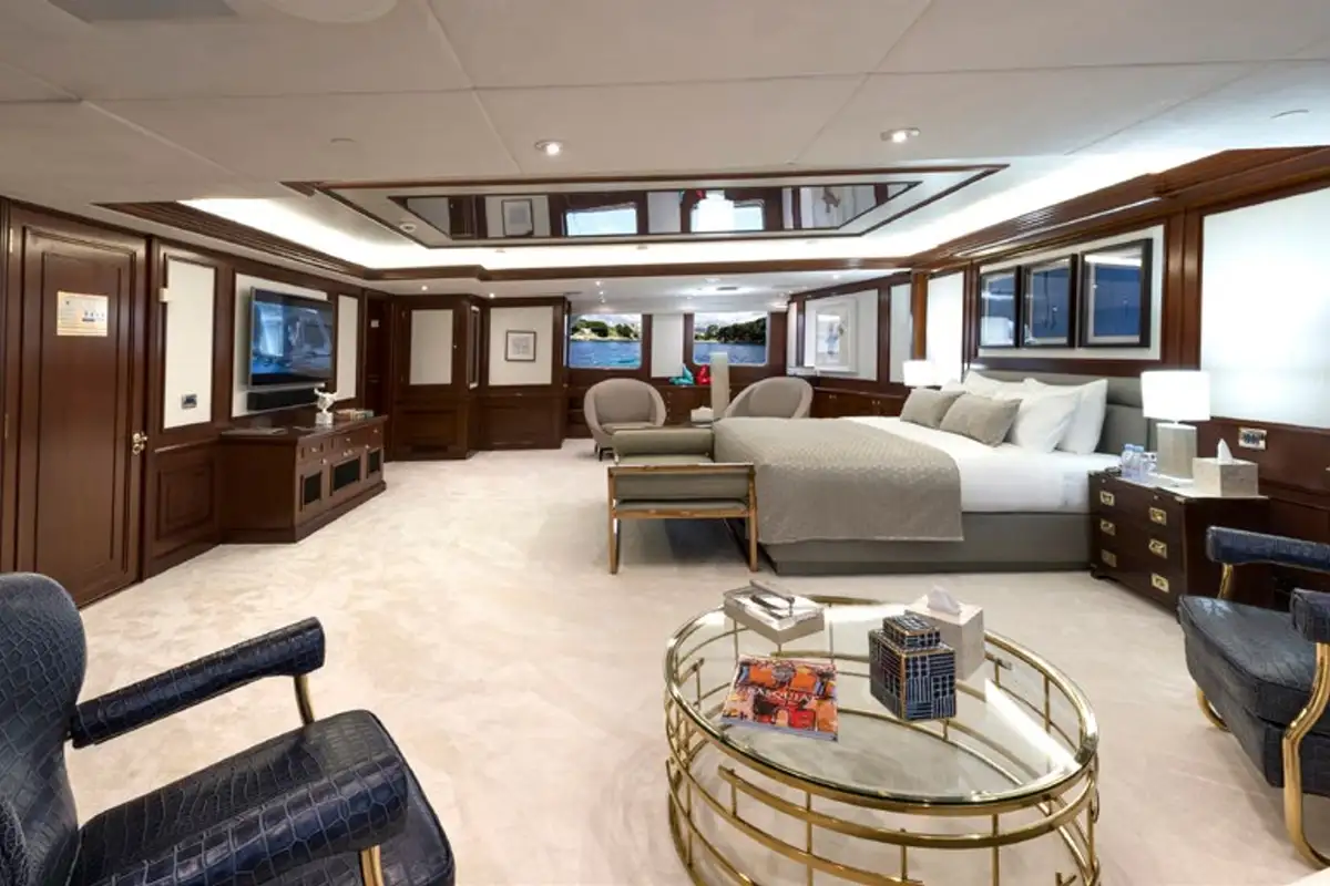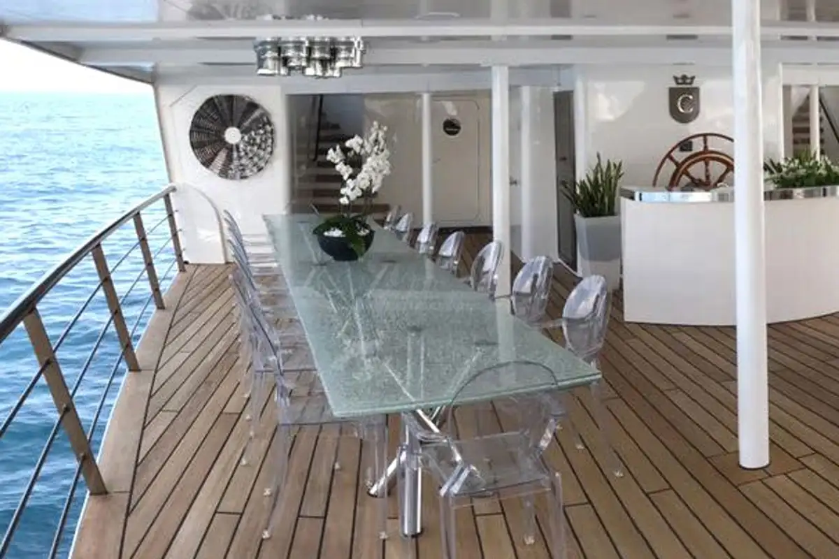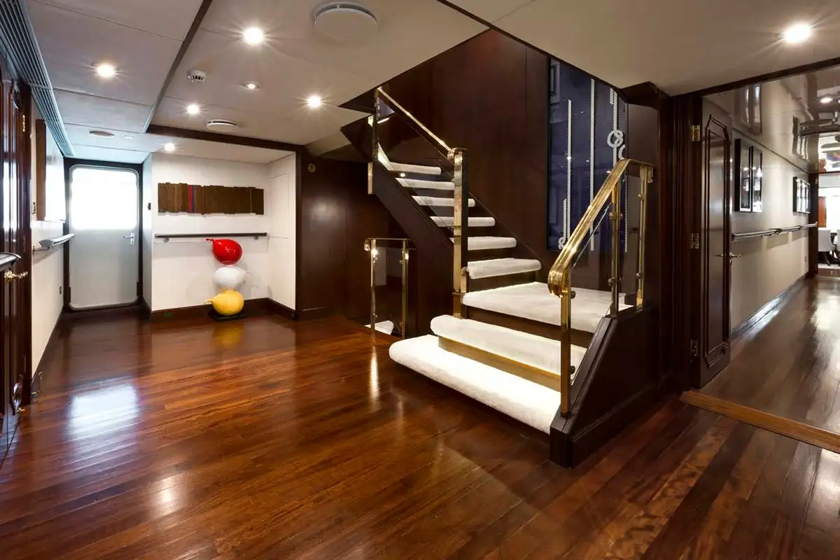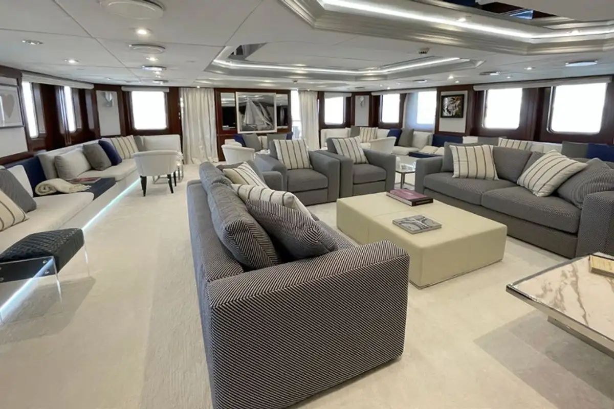An ideal yacht to host an extended family accompanied by their own servants and staff, or eminently suitable for an unforgettable large-scale party, she has 19 guest cabins for a total of 24 people.
