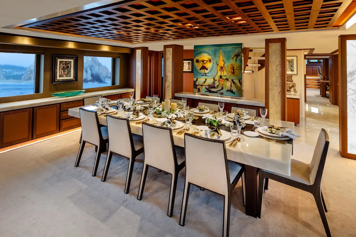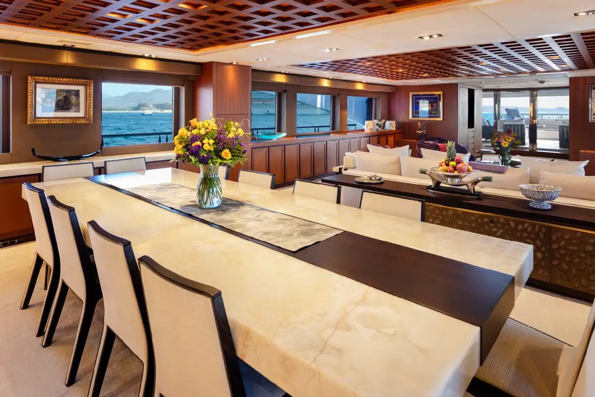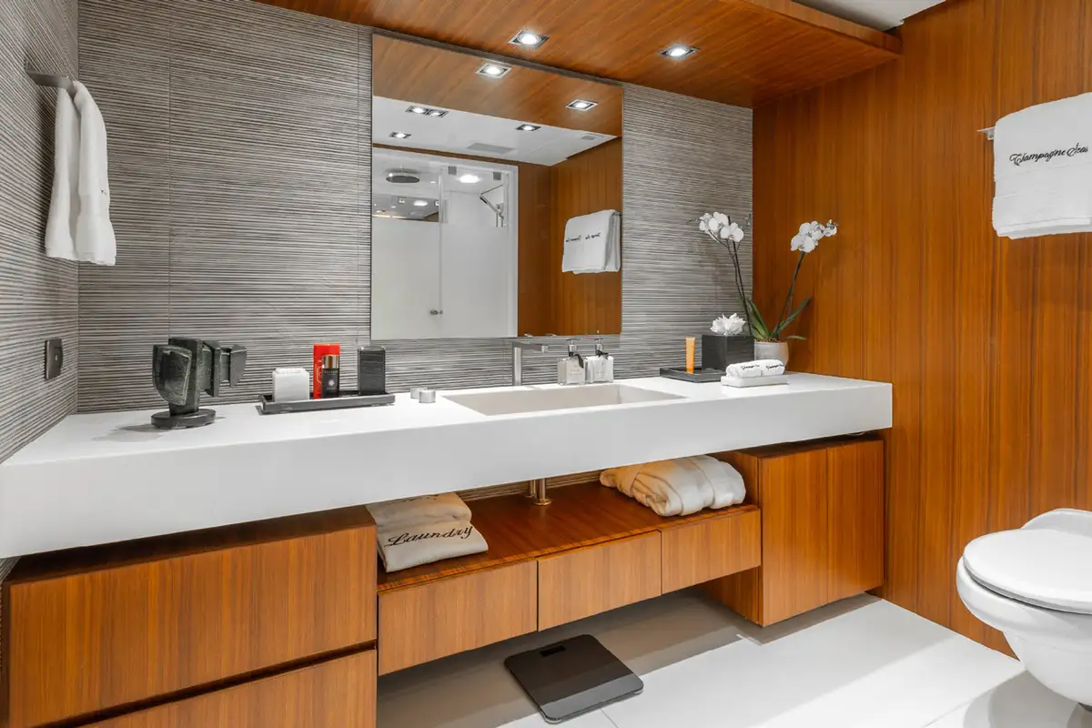 CHAMPAGNE SEAS is no slouch underway, making an easy 18 knots at cruising speed and 23 knots flat out – perfect to make it to a dinner reservation in the next port. Fine dining aboard in the contemporary saloon is another option to savour.