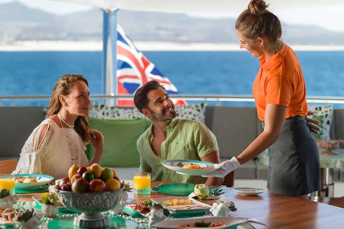 Take breakfast in bed, or head to the main deck aft, and you’ll find that the cuisine lives up to your expectations. Fresh fruit smoothies, pastries, local honey, fluffy pancakes – so many options for the most important meal of the day.