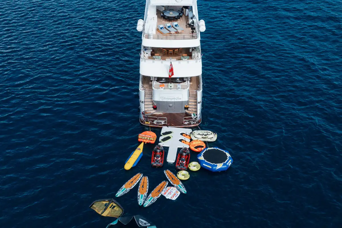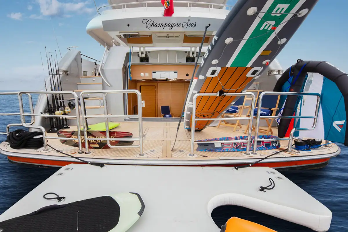 Life aboard takes on slower pace as you ease into your time away and enjoy spending time with your family and friends. Everyone looks forward to fun on the water, and CHAMPAGNE SEAS has everything ready - whether it’s just a morning dip off the swim platform astern, or a full-on scuba diving session.