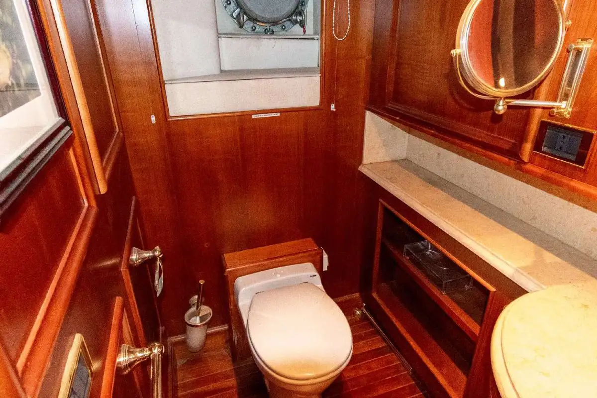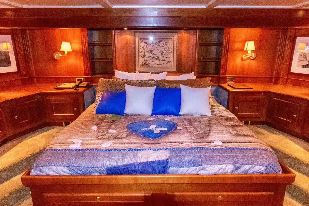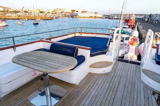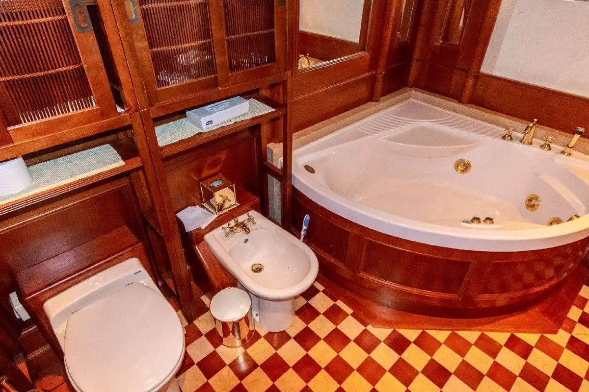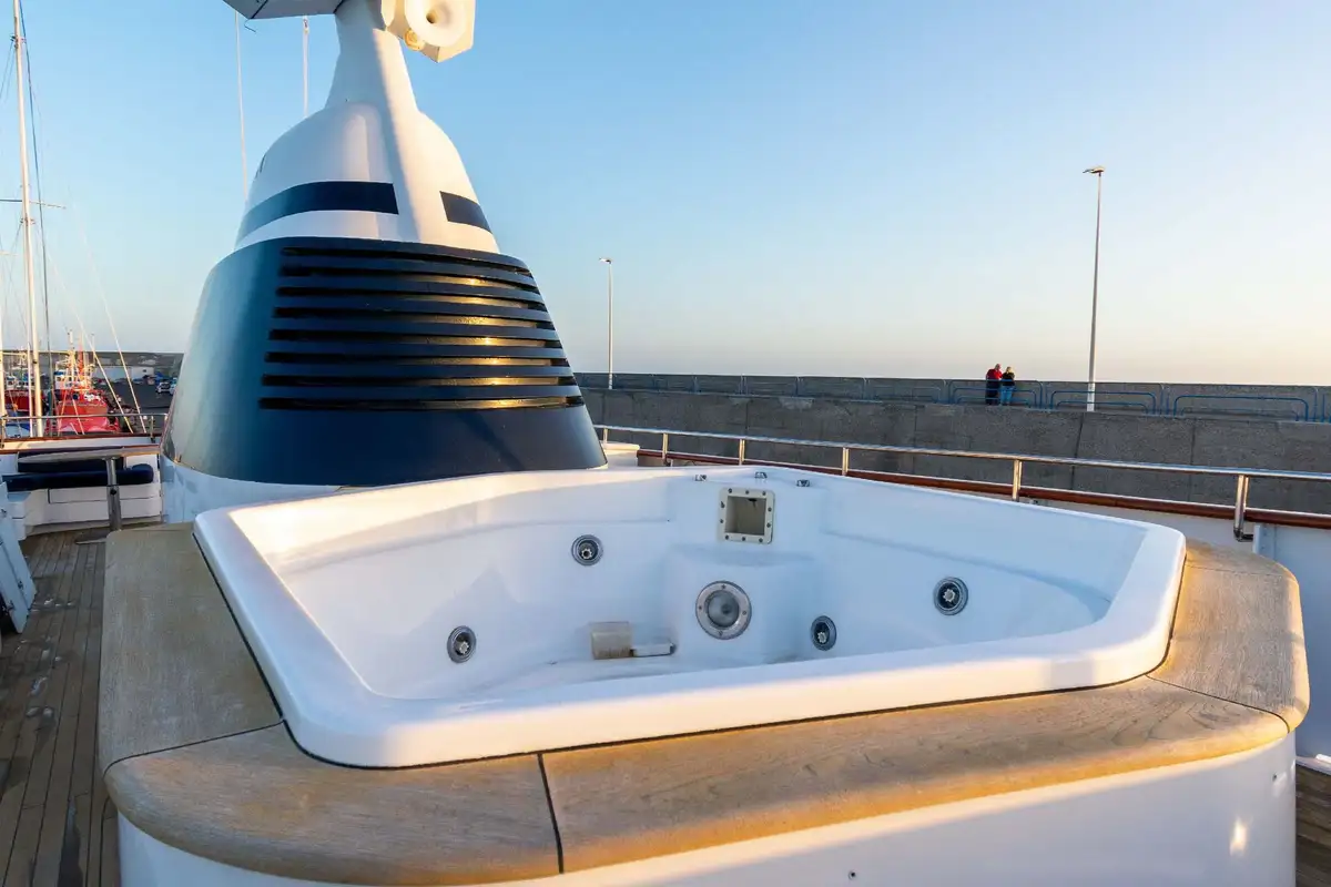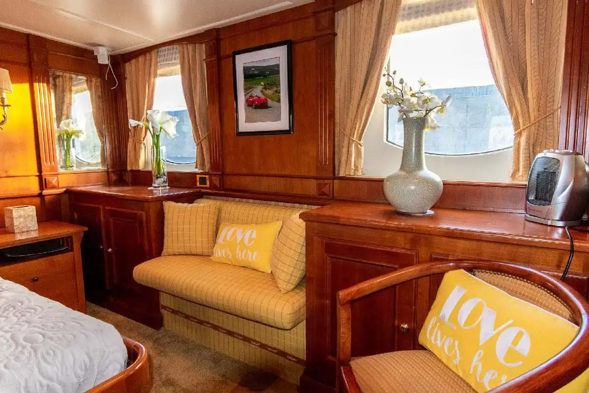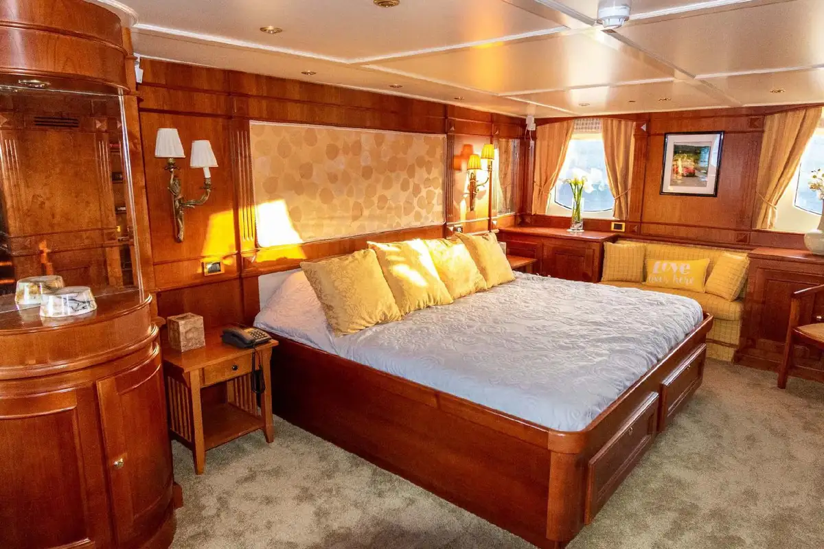 Stroll forward from here through the main deck lobby to the master suite, which has a magnificent main cabin with great views from the sofa, desk and king size bed, and a beautifully hand built, solid hardwood finish. The en suite master bathroom is roomy and opulent with a jacuzzi bathtub and a large, separate marble shower.