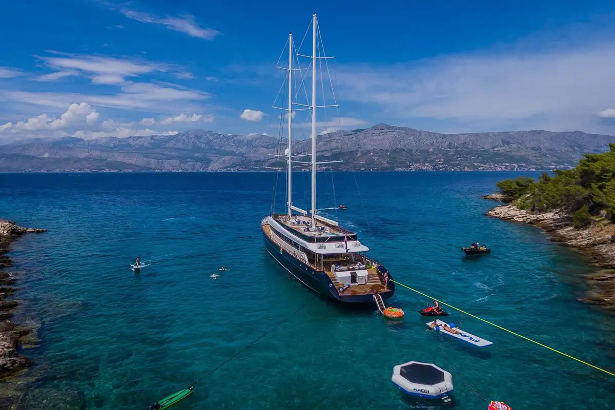 Explore the delights of the Adriatic on board CLASE AZUL 48m (158ft), a modern, stylish sailing yacht built in 2022 that offers her 12 guests in six cabins all the comforts of a motor yacht.