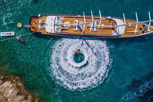 These include waterskis for adults and children, an inflatable trampoline, jetskis for high-speed fun, SeaBobs for swimming like a dolphin and an e-foil for skimming above the water. If you prefer an easier pace, there are kayaks, SUPs, snorkelling gear for underwater safaris and fishing equipment so you can catch your lunch.