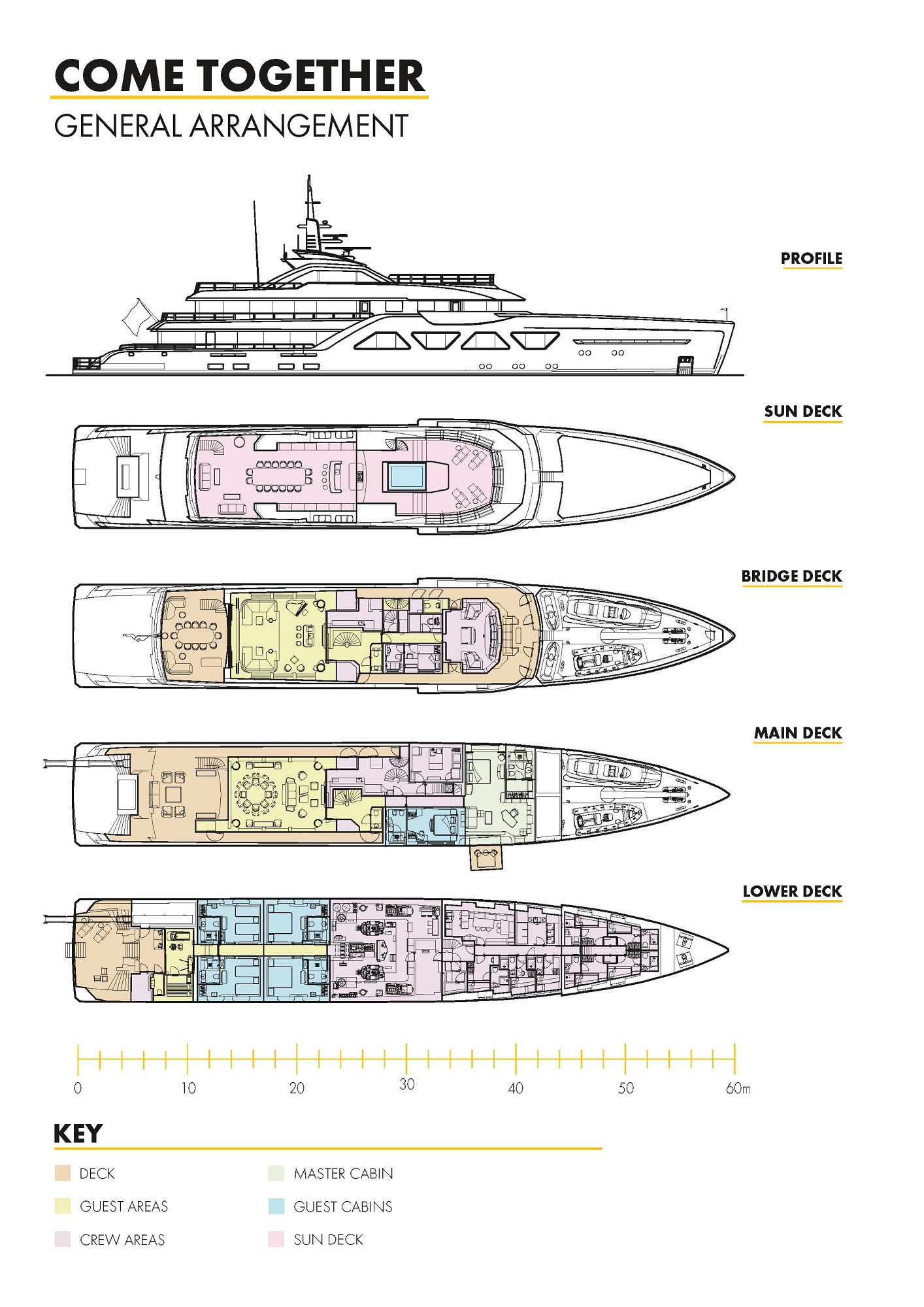 As the first yacht in a new generation of Espen Øino-designed Amels 60 limited editions superyachts, Come Together features a range of stunning features, including a large beach club that can be accessed directly from the lower deck guest cabins, a vast 27m sun deck and 7-square-metre fold-down terrace in the owner’s suite. With luxurious accommodation for 12 guests, a huge swim platform and an experienced crew of 14 along with with a collection of high octane toys, Come Together offers the ultimate charter formula.