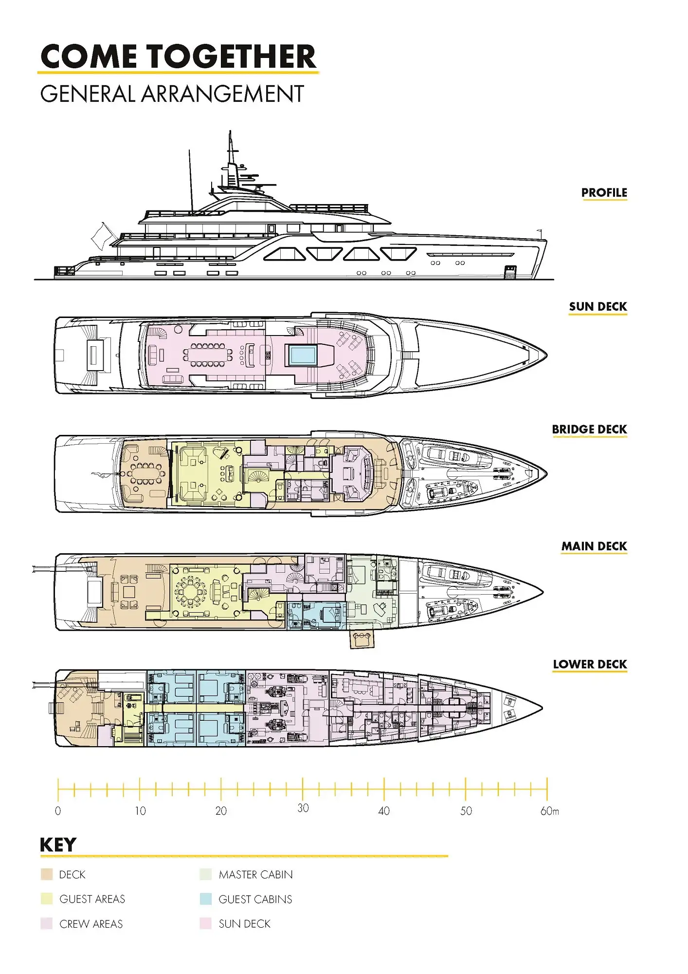 As the first yacht in a new generation of Espen Øino-designed Amels 60 limited editions superyachts, COME TOGETHER features a range of stunning features, including a large beach club that can be accessed directly from the lower deck guest cabins, a vast 27m sun deck and 7-square-metre fold-down terrace in the owner’s suite. With luxurious accommodation for 12 guests, a huge swim platform and an experienced crew of 14 along with with a collection of high octane toys, COME TOGETHER offers the ultimate charter formula.
