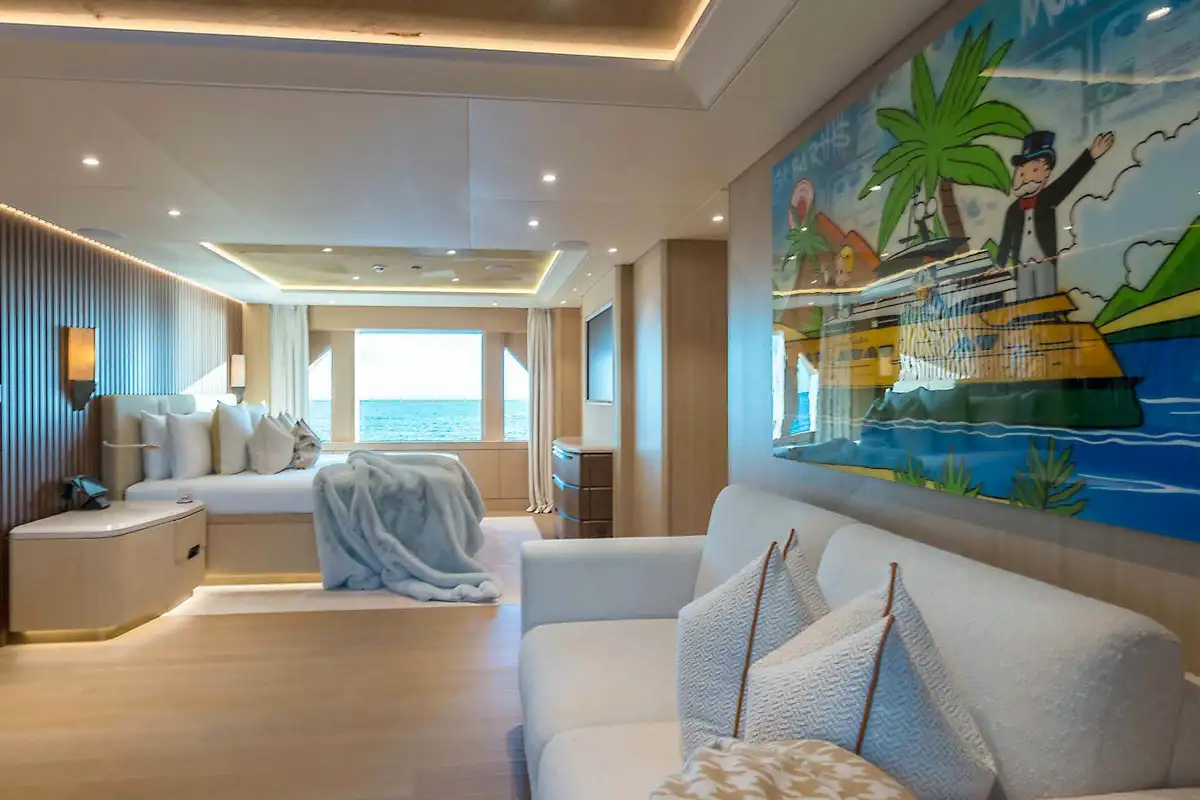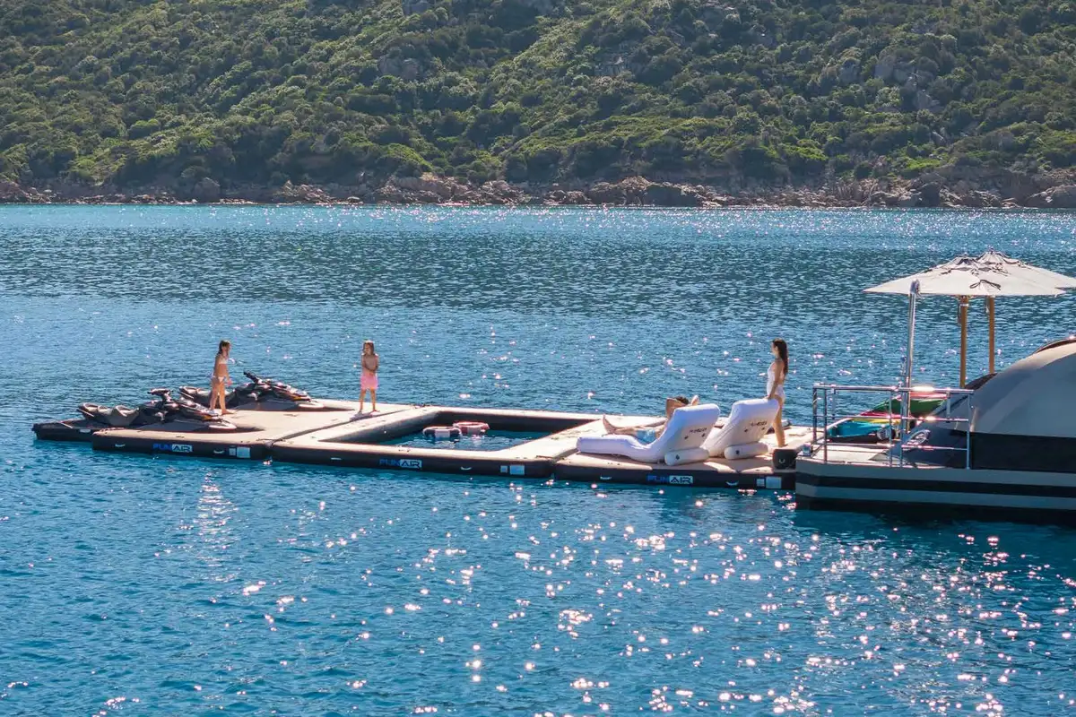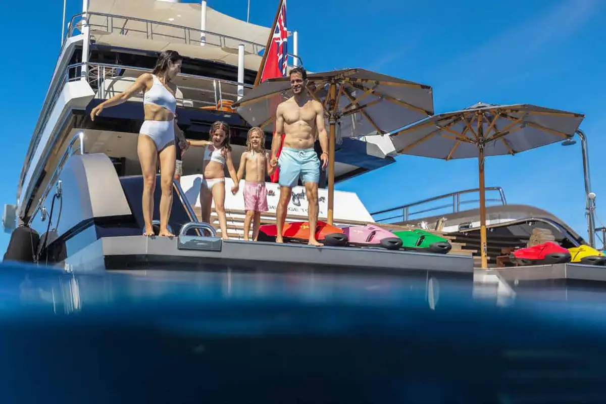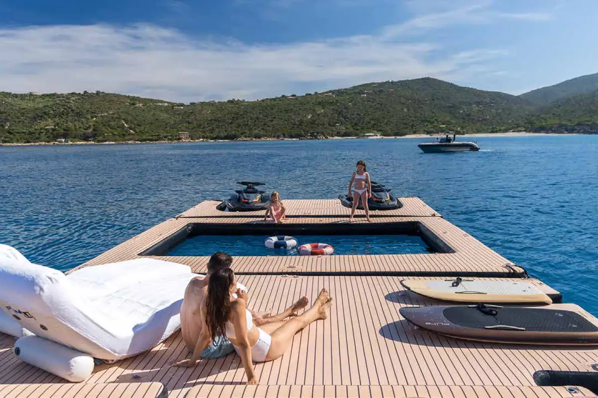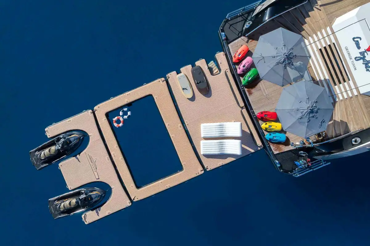 For those who really want to make a splash, the giant 38-squaremetre swim platform, accessed through the beach club or via stairs from the main deck, is the perfect way to access the yacht’s extensive collection of toys. Two super stylish tenders are on hand to whisk you ashore or for excursions, while the toy box is full to the brim with all-new, state-of the-art toys, daring you to try everything at least once.