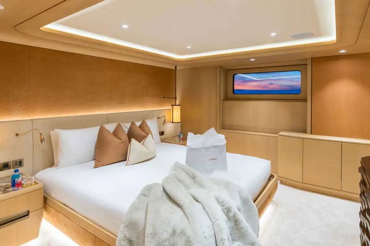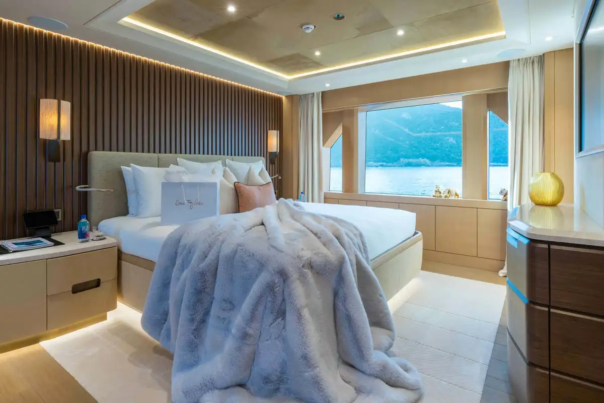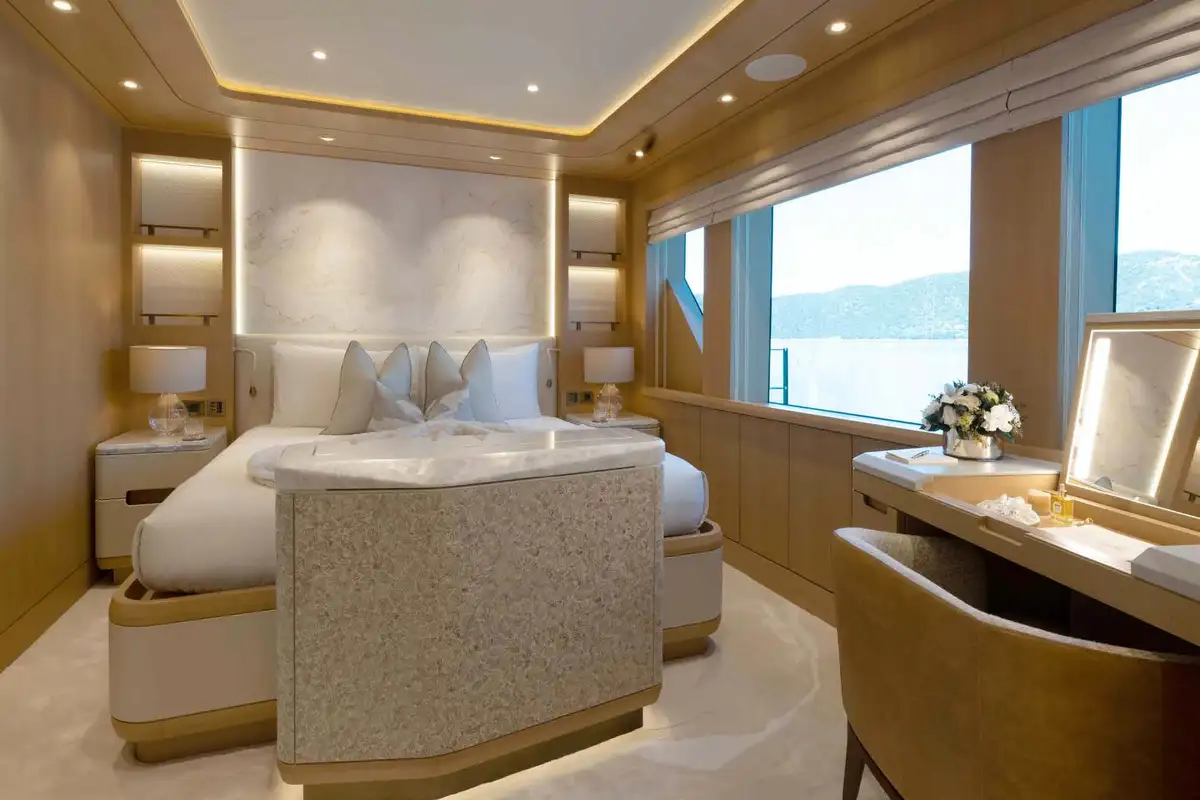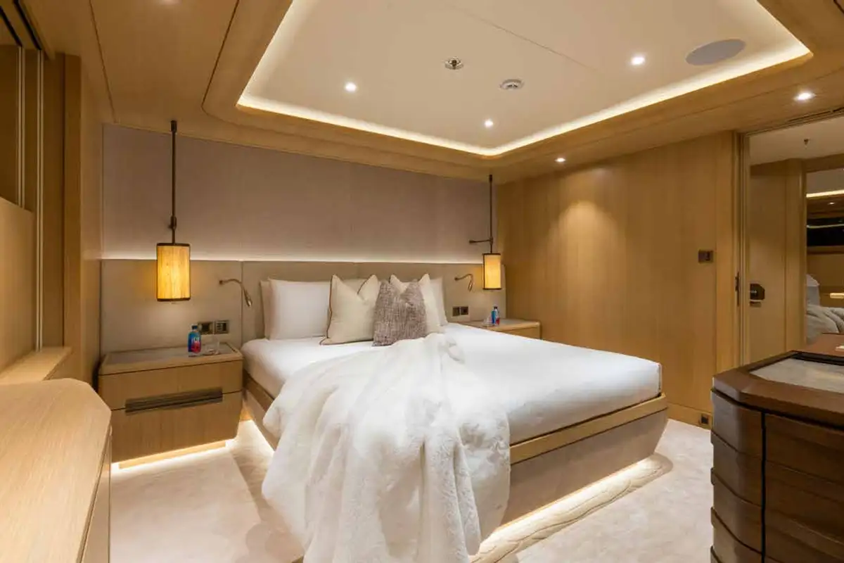 - Full beam master cabin with walk-in wardrobe, en suite, and private balcony