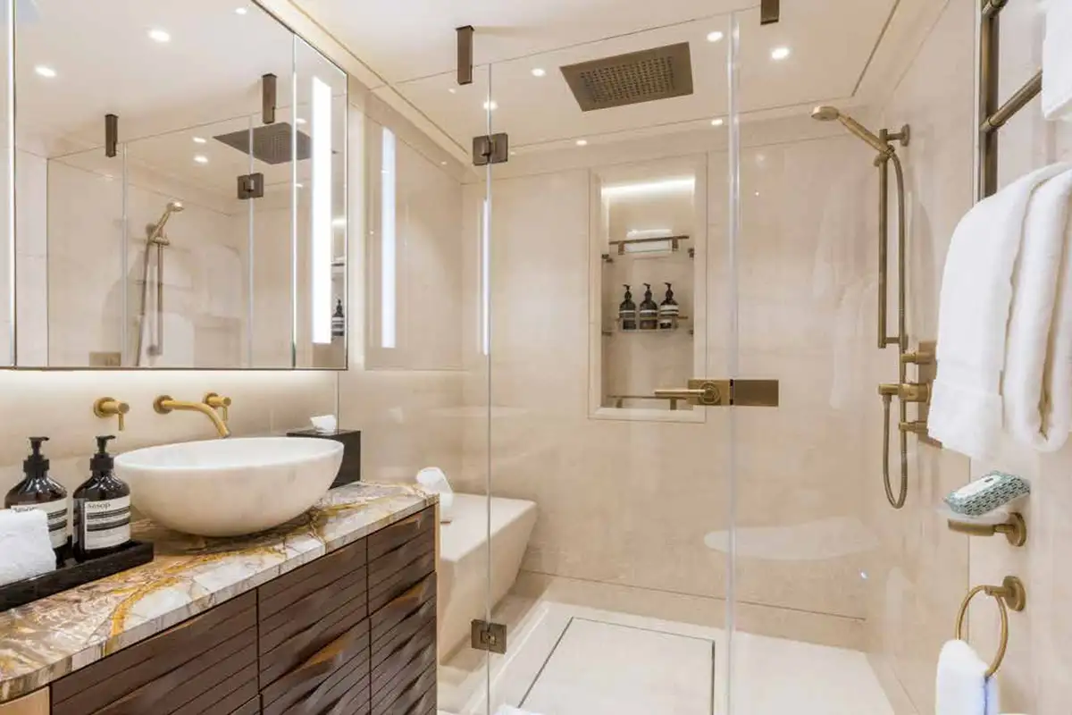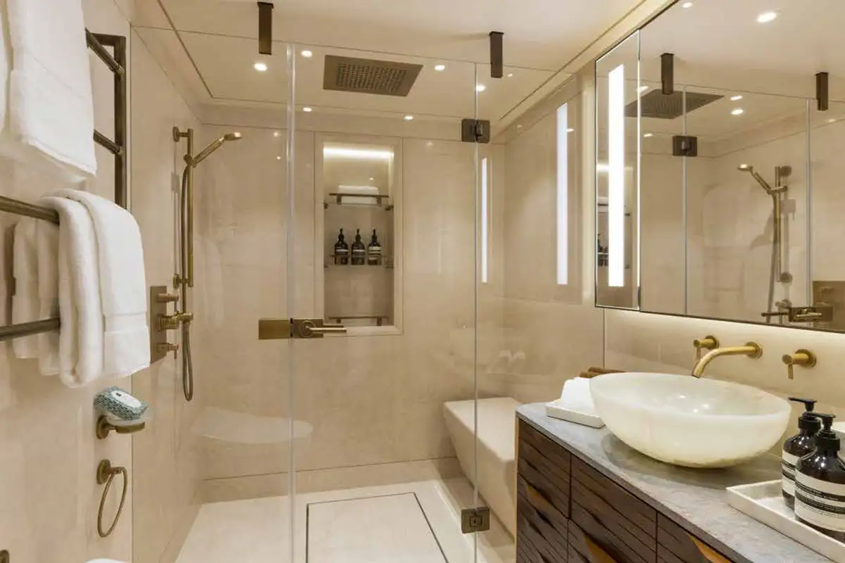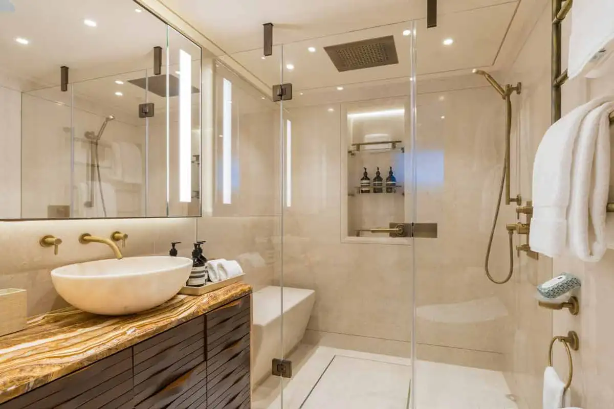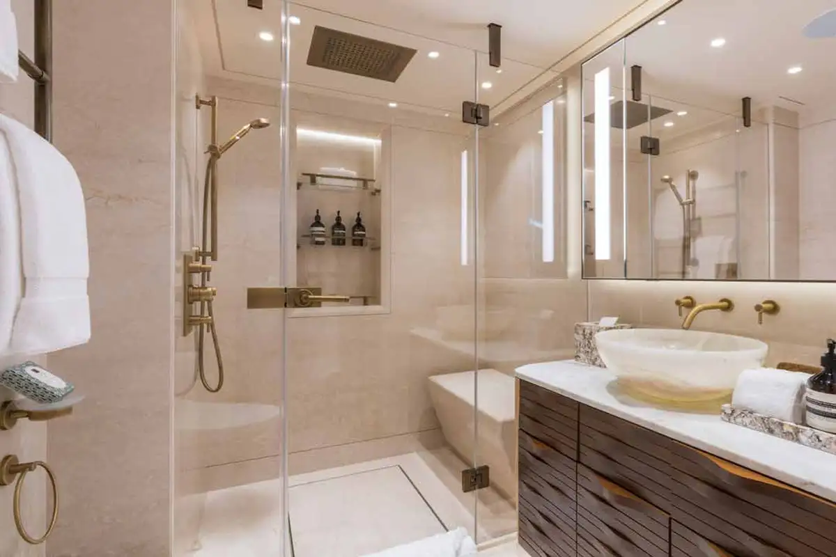 - Full beam master cabin with walk-in wardrobe, en suite, and private balcony