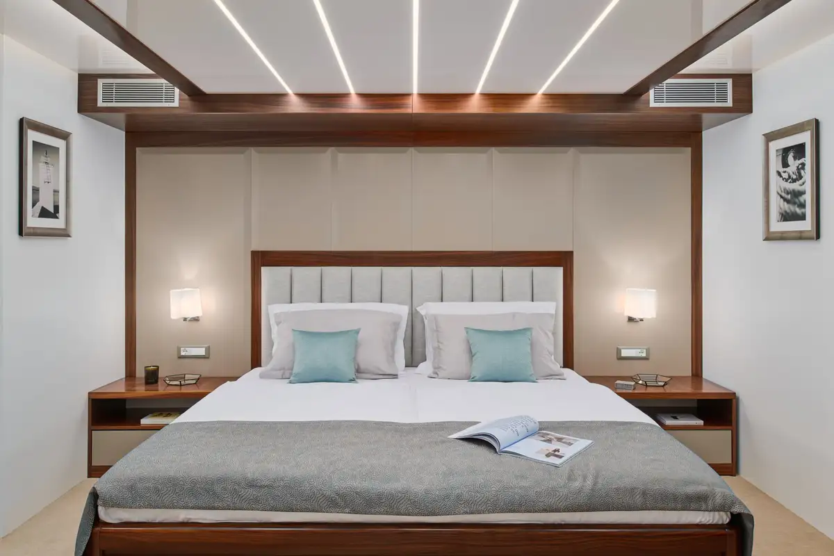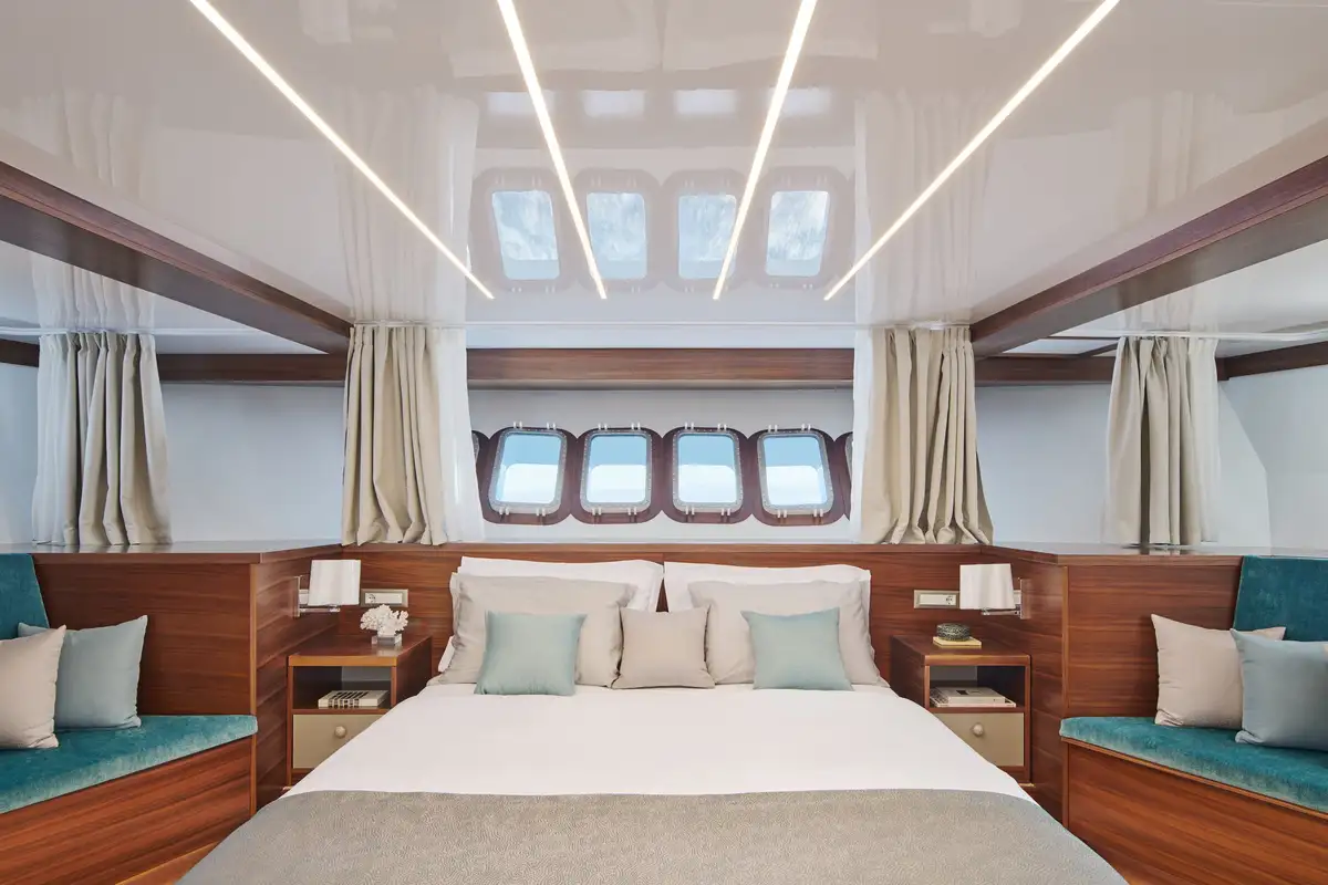 There’s onboard entertainment too, in the form of new AV including Bose and Sony equipment and Wi-Fi connection around the yacht. Including in every cabin.