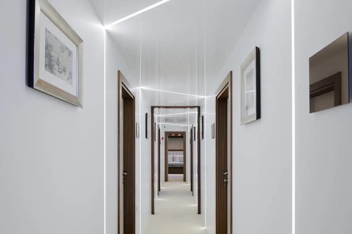 Her classic exterior belies her modern, practical and beautifully stylish interior. CORSARIO has a wonderfully light, relaxing, and contemporary beach house feel in her voluminous saloon. Central to the saloon, and the social hub of the yacht, is the welcoming bar area. Forward and aft, there are stylish lounge areas to relax and enjoy pre- or post-dinner drinks.