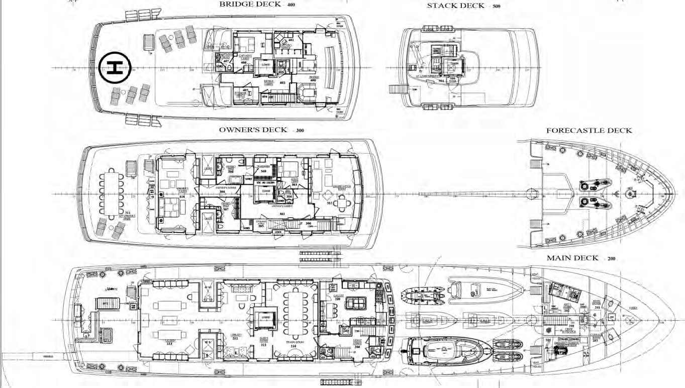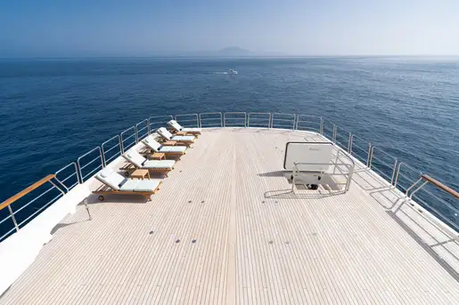 Inside, her interiors blend classic refinement with subtle maritime touches, think porthole mirrors, cool blue tones, and smart detailing. The main lounge and library provide elegant spaces to relax indoors, while a forward-facing observation lounge on the owner’s deck offers 180-degree sea views. Guests can also enjoy a well-equipped gym, a conference room for working on the go, and a serene massage room for total relaxation.
