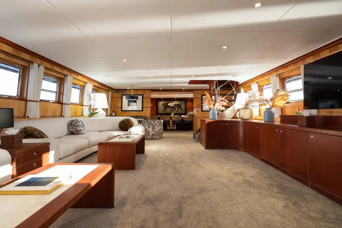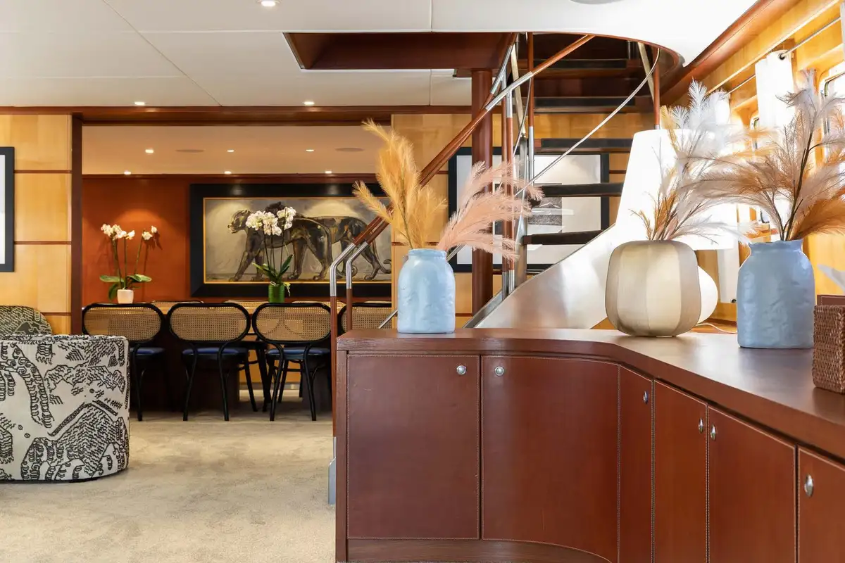 Available for charter again, after a two-year refit (2021), the gorgeous 45.2m (148.3ft) CURIOSITY is a stylish retreat for those wanting the panache and grace of a past era. Built in 1985, CURIOSITY takes the very best styling cues from the late 70s; warm-coloured hardwoods, brushed metal and swathes of leather create a feast of tastefully modern design, over the four guest decks.