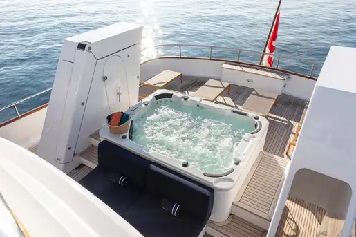 CURIOSITY is designed for relaxation and well-being, whether you’d like to spend time in the seven-seat jacuzzi or receive a massage alongside it, the choice is yours. There are areas on deck for lounging, dining and exercise, or a stroll to the large swim platform gives you a wide space next to the sea for sunbathing, yoga or Pilates.